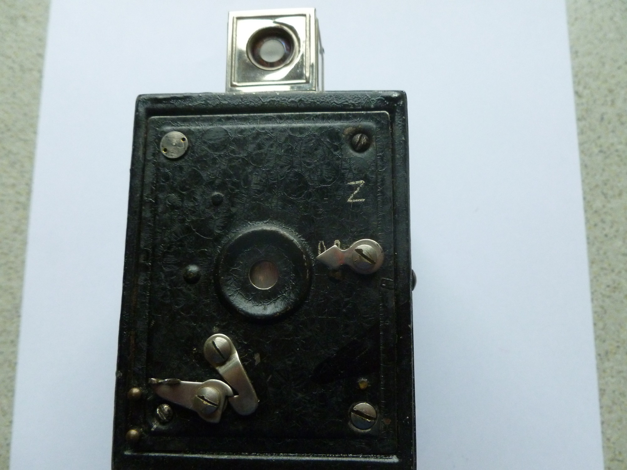 gestern habe ich mir ein Exemplar dieser Kamera geangelt und dazu auch etwas recherchiert; das ist wirklich ein interessanter Fall, weil in der Literatur ganz unterschiedliche Angaben gemacht werden, ohne dass es konkrete Nachweise gibt. Der Verkäufer bot die Kamera als Spitzer-Box an. Bei Abring ist die Box unter Nr. 2837 gelistet, Abring ordnet sie aber Fex (Berlin) zu. Das wäre die Fa. Fotofex von Fritz Kaftanski. In einem Artikel über die Mini-Fex bemerkt Dieter Riebe, dass Fotofex "mit dem Zusammenbau vorgefertigter, zugelieferter Teile zu einfachen Fotoapparaten (WERBEFEX, REKORD-FEX, KLAPPFEX, FEXY I, Schülerbox - von Spitzer oder Ising" begonnen habe (Photo-Deal 91, 2015, S. 22). Das ist etwas missverständlich formuliert: War Kaftanski Hersteller einer (dieser?) von Spitzer vertriebenen "Schülerbox", oder hat Kaftanski von Spitzer Teile bezogen? Spitzer war ja eher Händler als Hersteller. Hat Fotofex an Spitzer geliefert und die Kamera zugleich unter eigenem Namen angeboten? Auch bei Kadlubek wird eine Schülerbox von Fotofex gelistet (FOF0080), ebenso bei Kerkmann – und dort ist sie, unter Verweis auf einen Fotofex-Katalog, auch abgebildet (01157) und wird ins Jahr 1928 datiert.