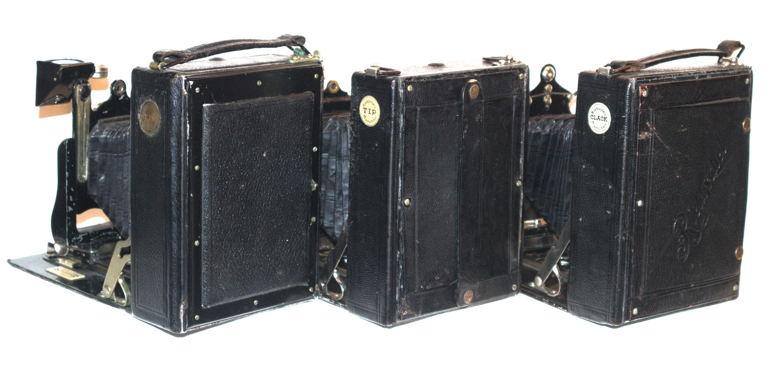 Hier erst mal nur eine Übersicht, jedoch nicht nur über Tip, auch über Tip und Clack: Die "Neue" ist die älteste - und so sah sie auch aus und tat sie auch (nicht). Also die mit dem "geteilten Heckfenster" - kennt man doch, vom VW-Käfer, da war's auch der älteste ... die Clack ist etwas neuer, die zweite Tip aber wohl auch vor WK I entstanden. Die Clack hat ein ziemlich exklusives Feature: statt der Unendlich-Einstellung kann ein Anschlag bei einer anderen Entfernung gewählt werden.