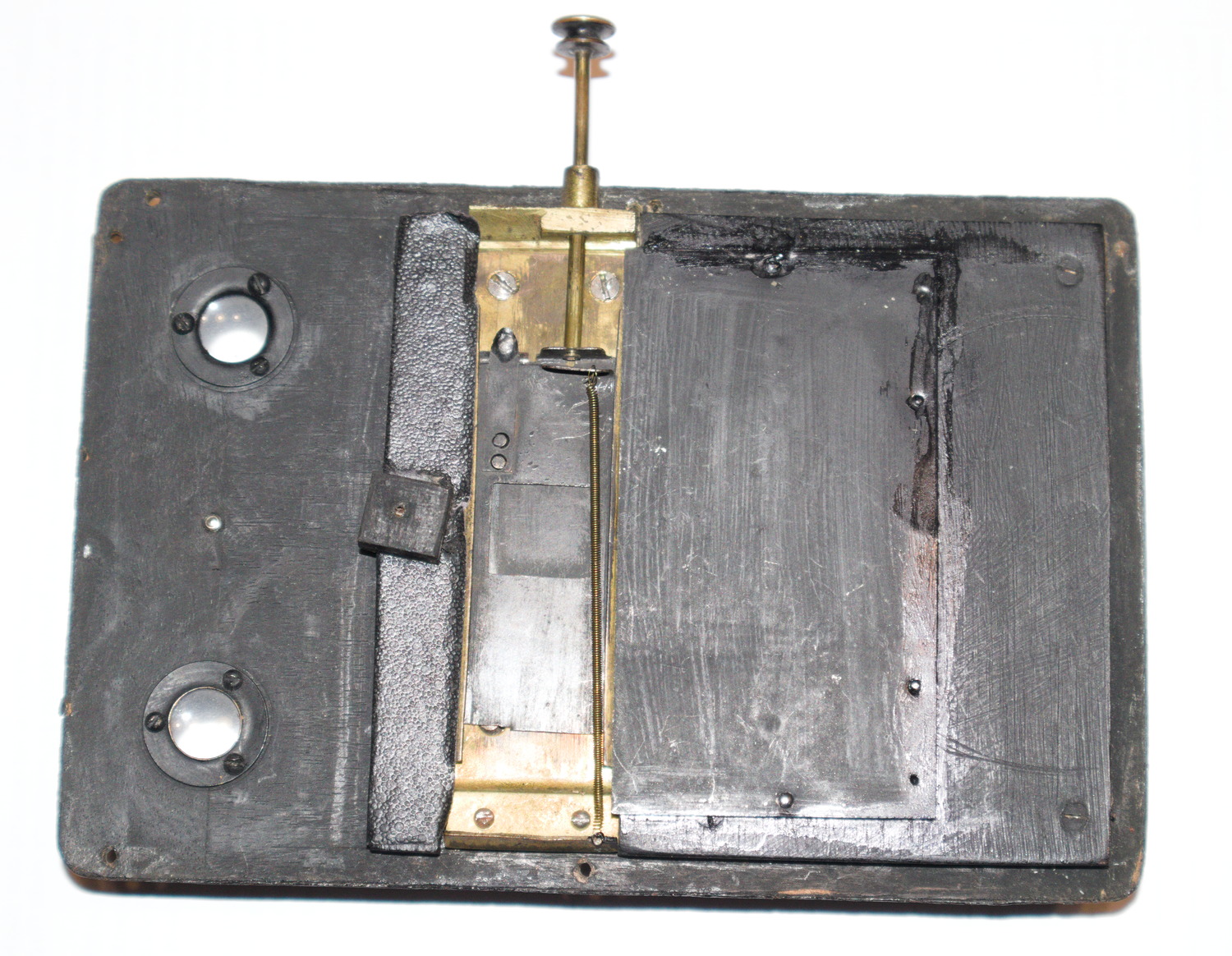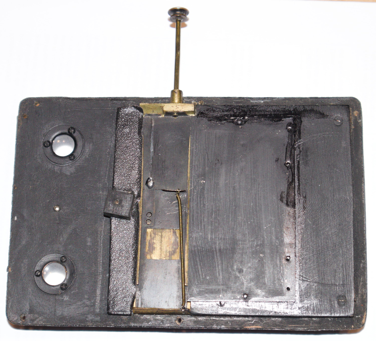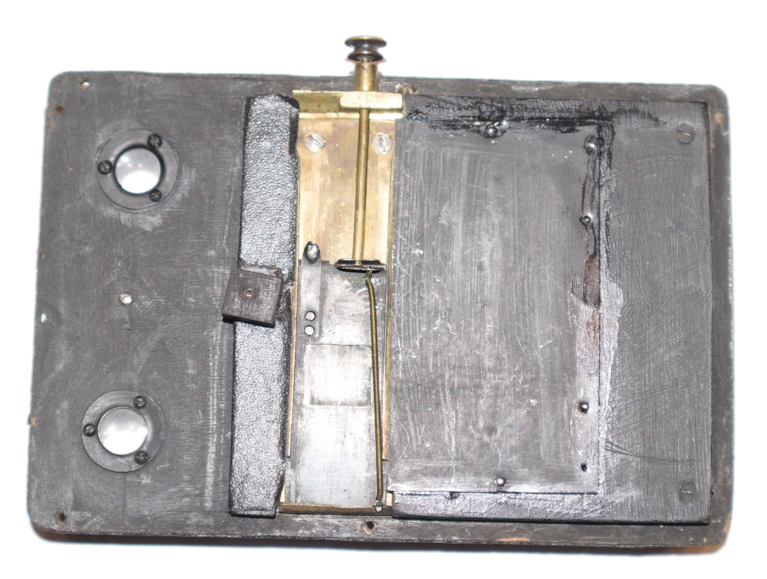 Leider hat Sepplbauer das Innenleben der Kamera verschwiegen, es dürfte jedoch -naja- "konventioneller" sein. Die hier vorgestellte ist nicht die einzige Express Newness mit allerdings meist separatem Zählwerk, hier ist ein sehr einfacher, eleganter und technisch interessanter Weg gefunden worden, Zählwerk und Andruckfeder miteinander zu kombinieren - die Andruckfeder sieht deshalb merklich anders aus als nich nur bei Magazinkameras üblich, sondern auch all den Murer's, die ich bisher von innen gesehen habe.