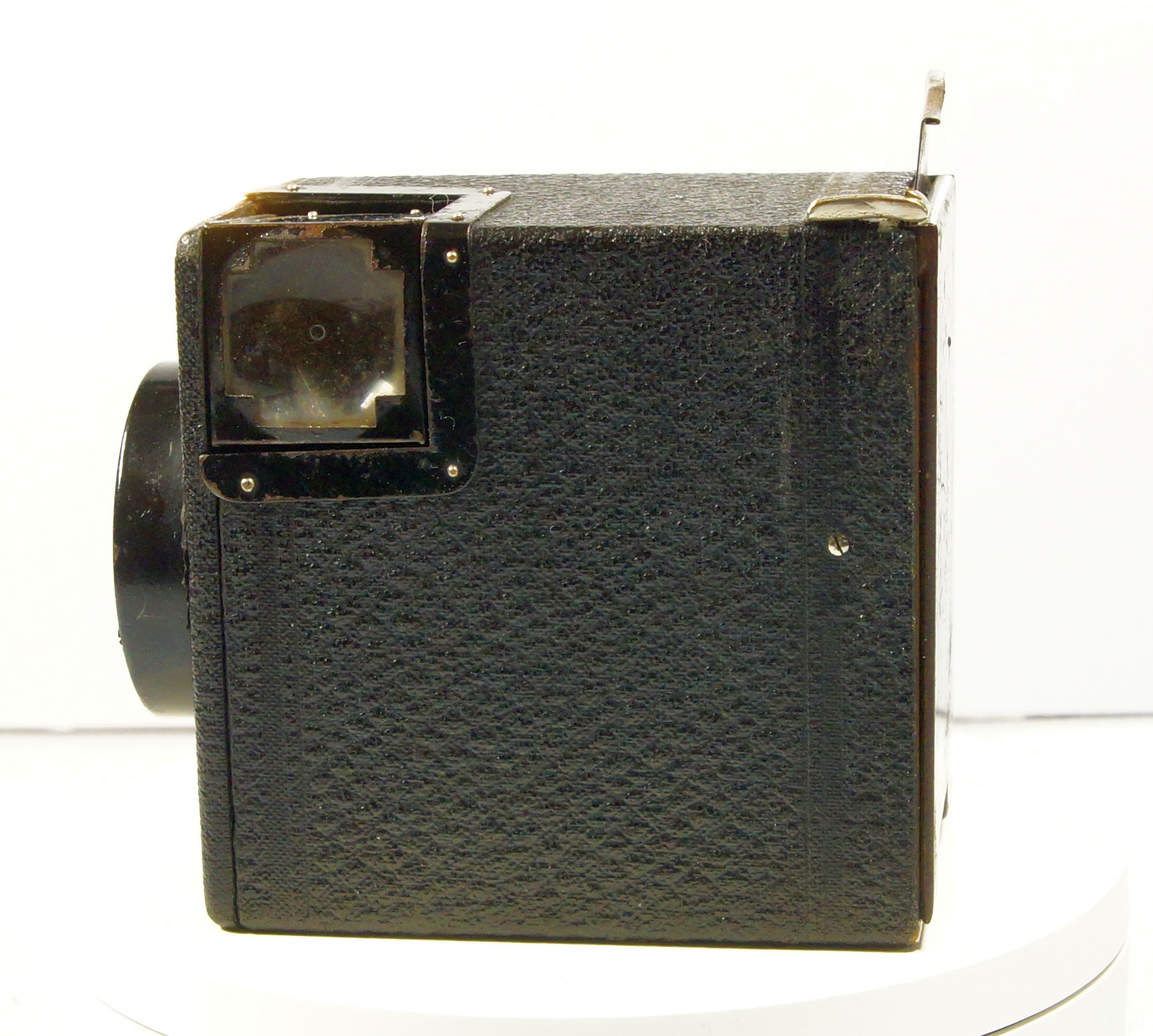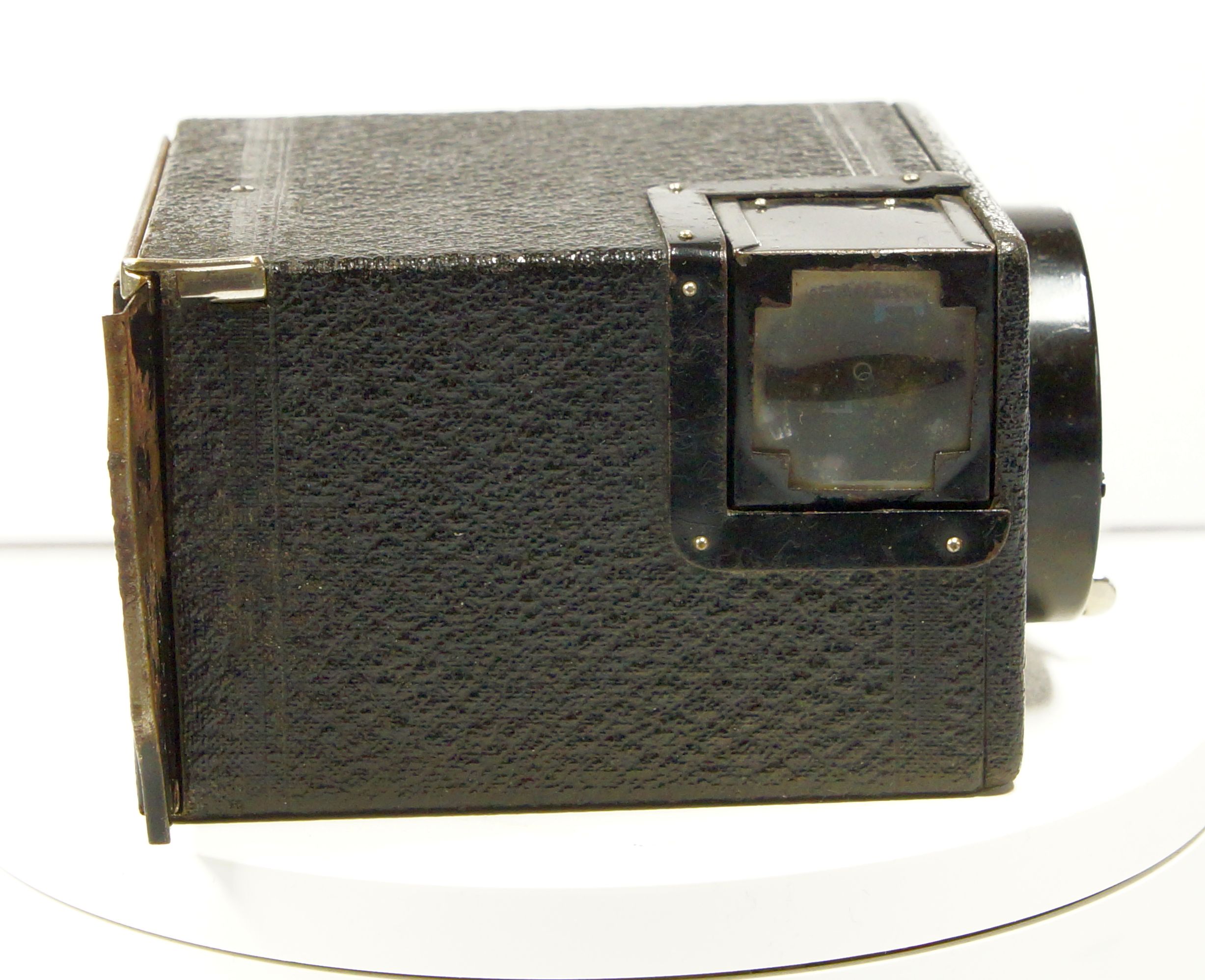 Hallo, diese Kamera hätte ich fast als unbestimmt eingeordnet, bis ich mir die Kasette etwas genauer betrachtet habe, und dort dann das Typische Pentagramm und den Schridtzug ICA gefunden habe, ab da war es leicht. Es ist klar eine ICA Aviso, wobei bei den anderen Bilder die ich gefunden habe, bei der Aviso 4 das Sucherloch auf der Vorderseite deutlich Tiefer war, aber ich denke das, dass über den Produktionszeitraum variiert haben kann, daher bin ich mir mit der einordnung recht sicher, wobei ich nicht verstehe warum es anscheinend nur die Aviso 1 und 4 gab. Besonders auffällig finde ich den schwenkbaren/drehbaren Sucher der Kamera, den habe ich so noch nirgends gesehen. Hersteller: ICA Baujahr :1914 -26 Geschwindigkeiten; M und Z Format: 4,5-6cm Trockenplatten kein Stativgewinde