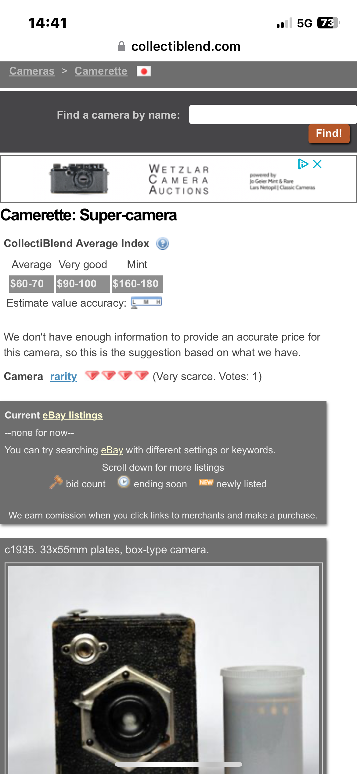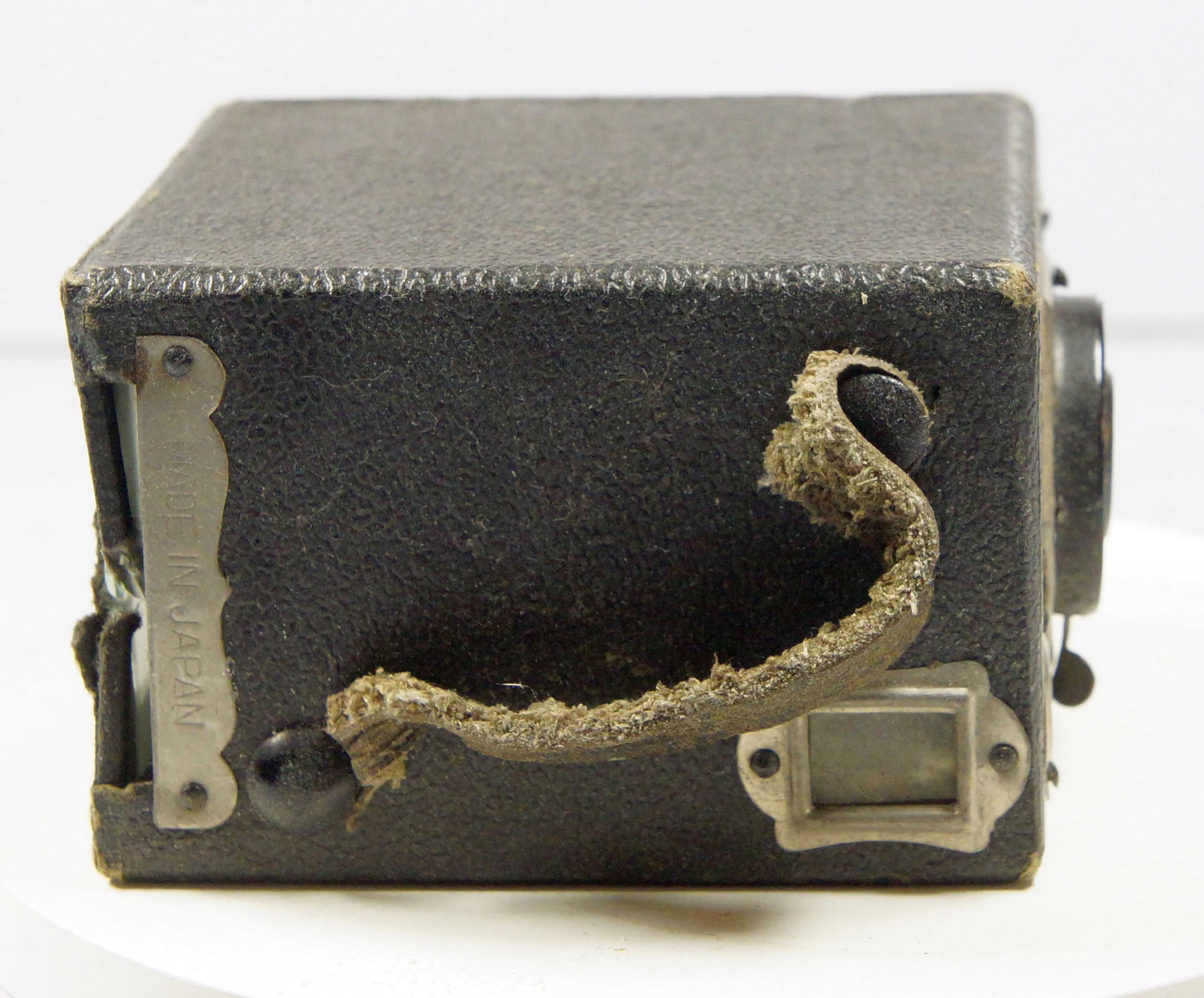 Die Box hat einen Mattscheibensucher, aber man kann auch über die Mattscheibe hinten das Motiv finden ( bei mir leider zerbrochen)- Allerdings liegt sie natürlich etwas hinter der Bildebene. Alles in allem eine interessante Kamera, und bis jetzt meine einzige japanische Box. Die Kameras wurden auch gerne als Yen Box bezeichnet weil sie im Allgemeinen für einen Yen verkauft wurden.