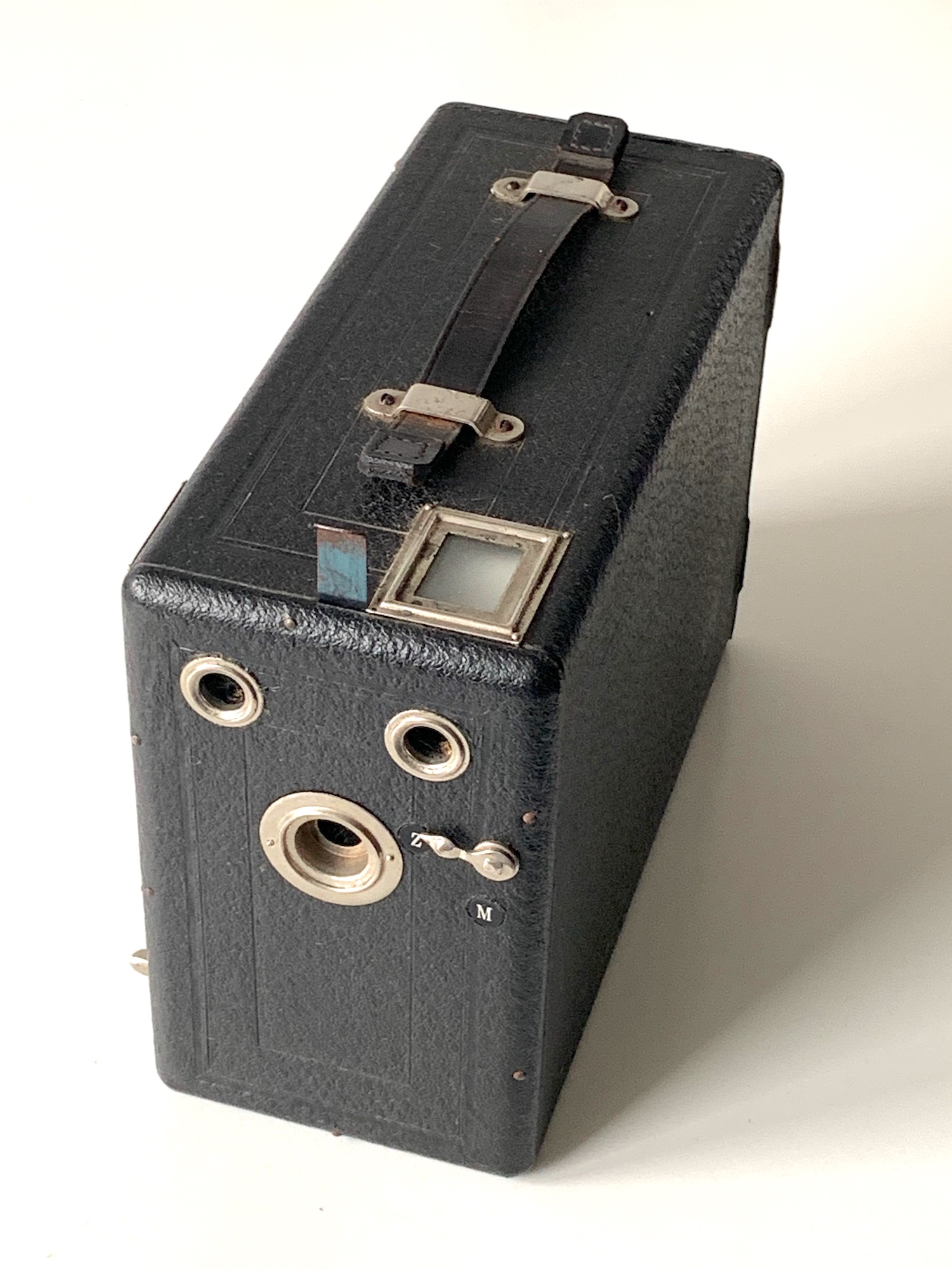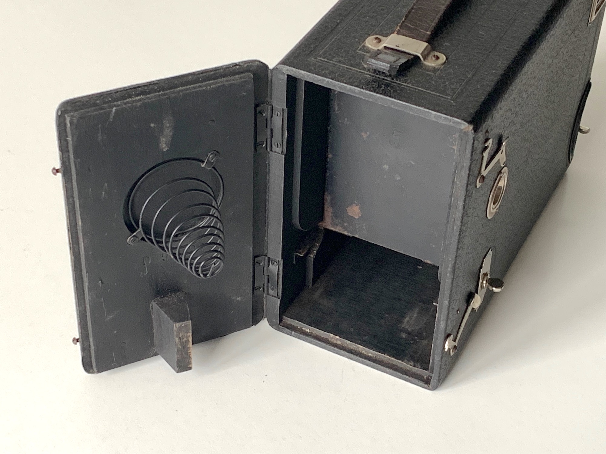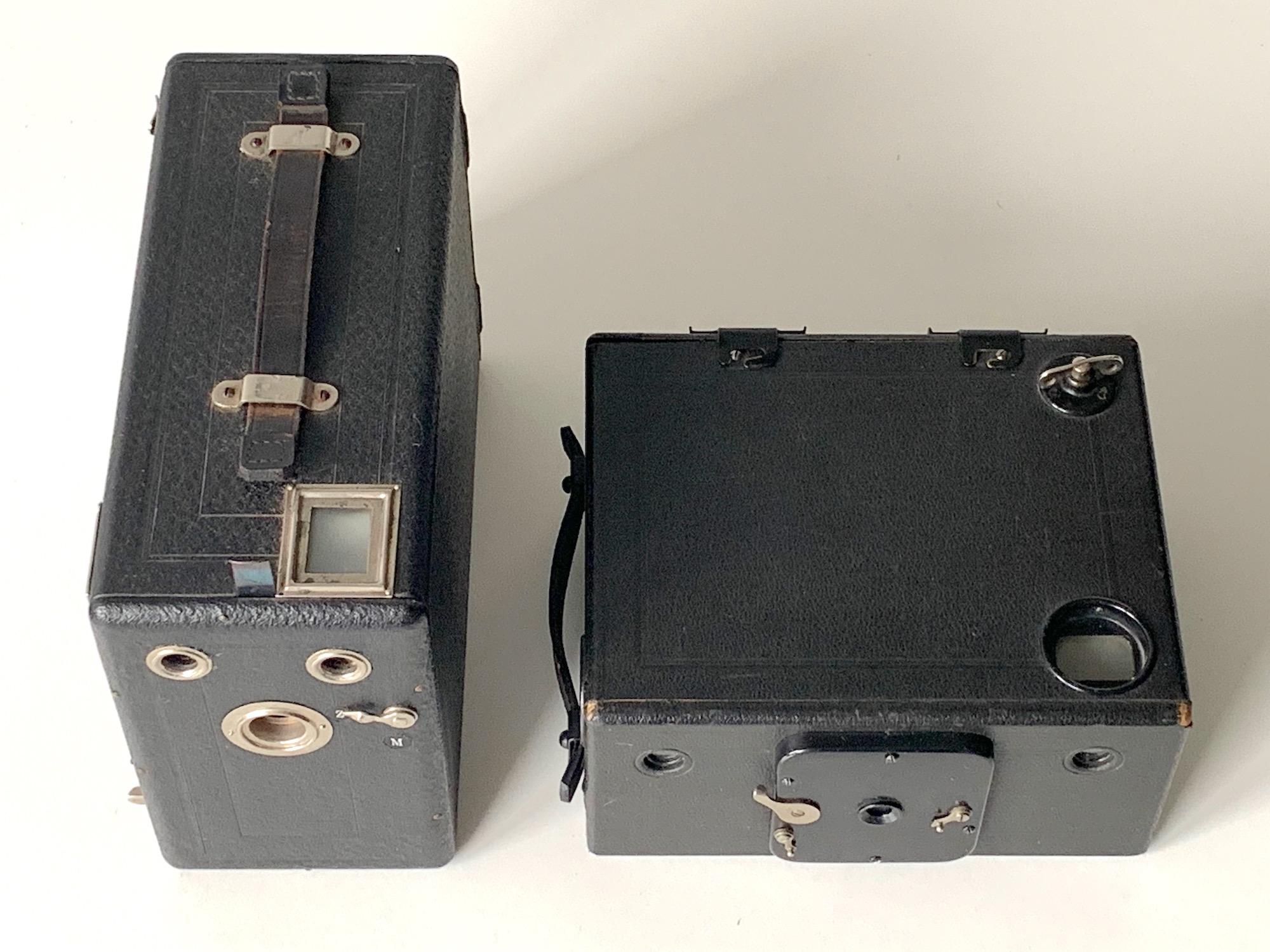 Für eine Magazinkamera ist die Trilby recht kompakt, wie der Vergleich mit einer zeitgenössischen Rollfilmbox zeigt, der Ernemann Film K 6x9 (1. Modell).