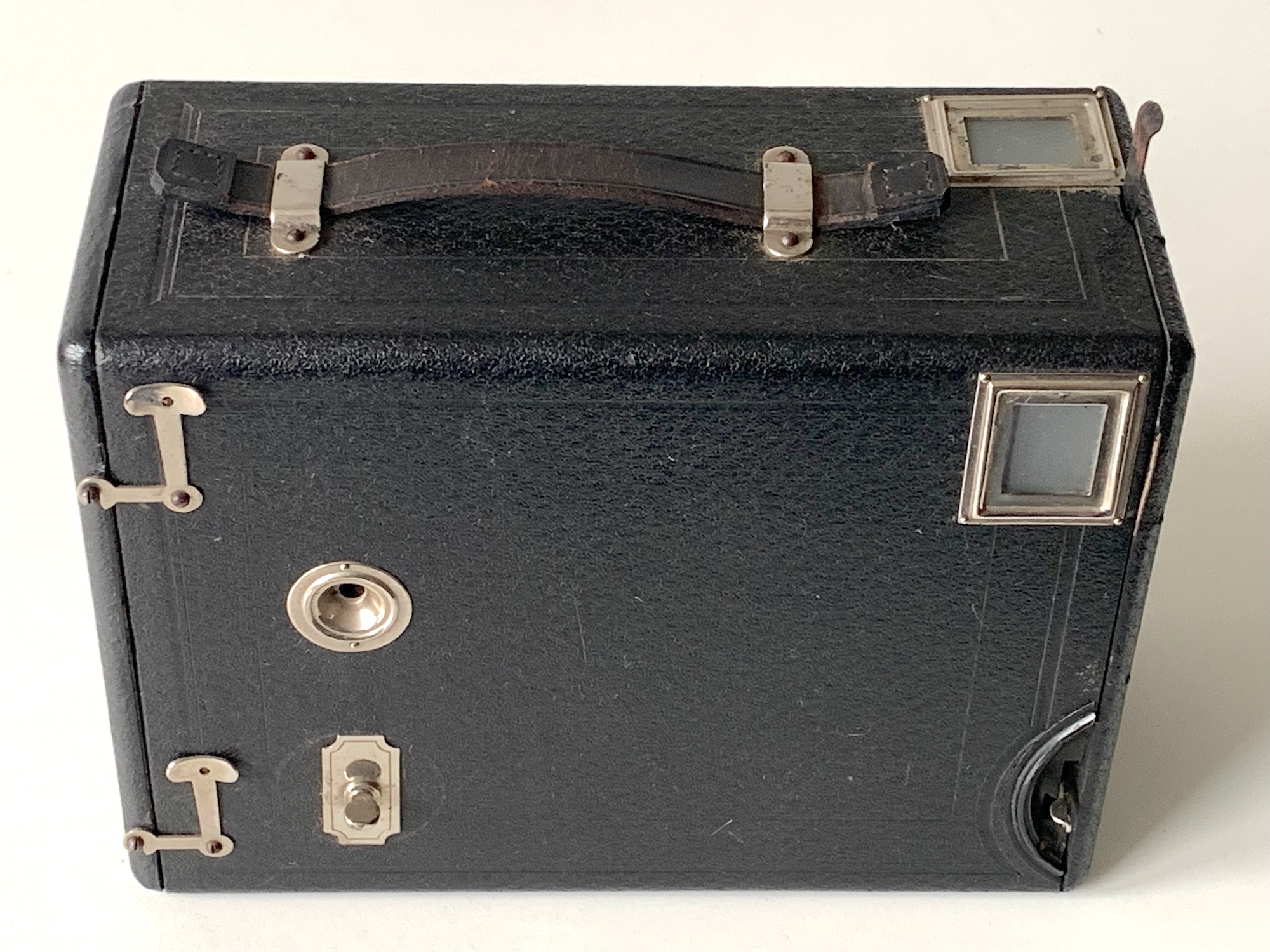 Sie besitzt eine boxtypische Ausstattung: Als Objektiv fungiert ein Achromat 1:12, eine Entfernungseinstellung ist nicht vorgesehen. Der Einfachverschluss liefert eine Momentzeit (M) oder B (hier Zeit). Der Auslöser kann bei Zeitaufnahmen arretiert werden. Es sind zwei Brillantsucher eingebaut. Mit dem in der Mitte befindlichen Schieber kann eine Lochblende eingeschoben werden.