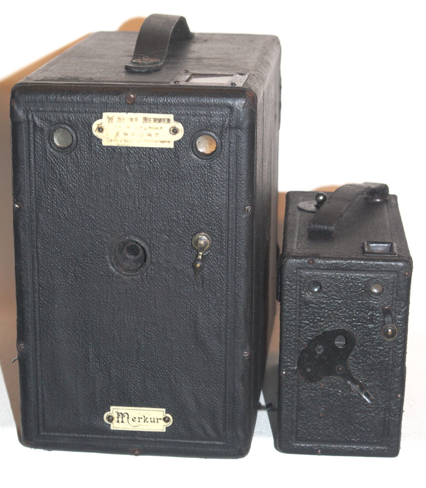 Du schließt Hüttig aus. Aus meiner Sicht gibt es aber (auch im WWW) wiederholte Fotos von Magazin-Boxkameras, wo Hüttig und Merkur im Zusammenhang stehen. Auch zeigt Dein Modell diese kleinen glänzenden Metallwinkel wie einige Hüttig-Modelle.