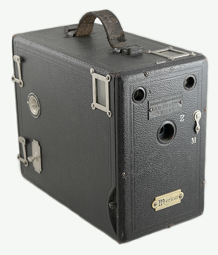 Als ich die Abb. deiner Ambrosio Taurus sah, kam sie mir sehr bekannt vor. Nach dem Ausgraben meines Schatzes sah ich, dass ihre Vorderseite praktisch gleich ist, wie deine A. Taurus (das grössere der beiden Bilder). Ist Ambrosio Taurus ein italienischer Kamerafabrikant gewesen? Meine hat das gleiche "Merkur" Emblem, aber oberhalb der Objektivöffnung eine Metallplakette mit "Fabrik fotografischer Apparate & Bedarfsartikel Langer & Comp. Wien". Langer & Comp könnte auch einfache Fotoapparate gefertigt haben, könnte aber auch nur ein Vertrieb für solche gewesen sein und sie von Ambrosio Taurus bezogen haben, wenn der der Fabrikant war.