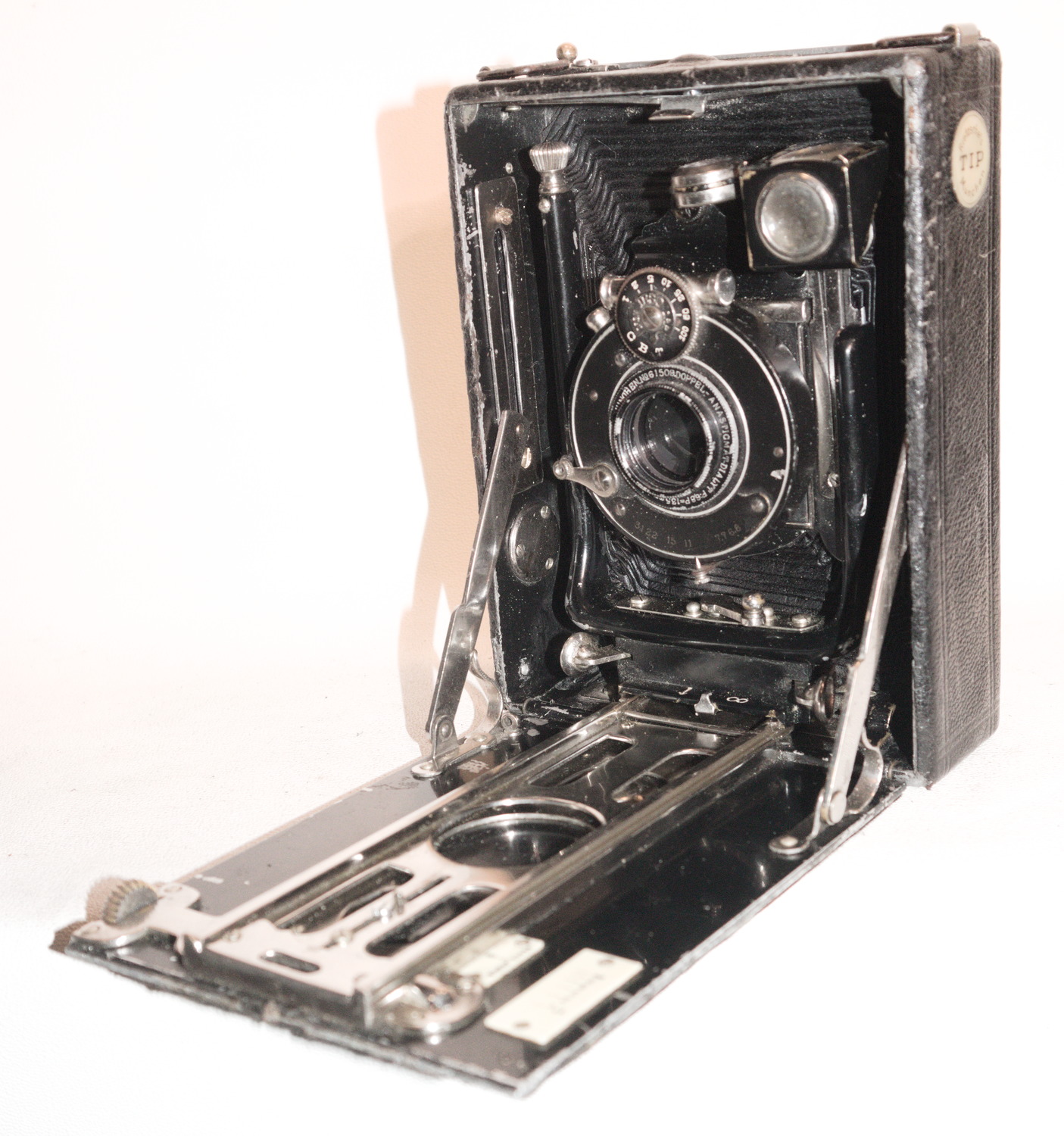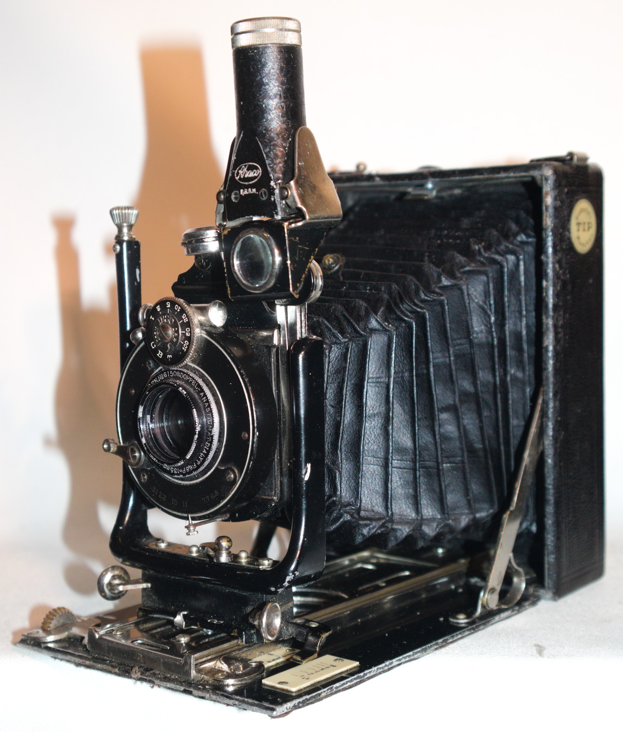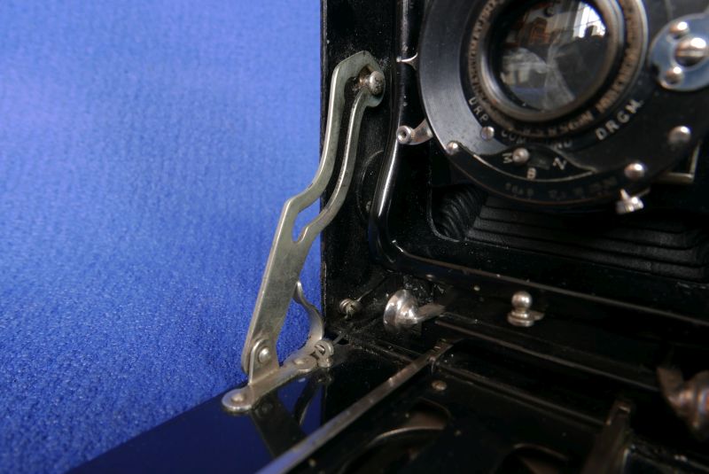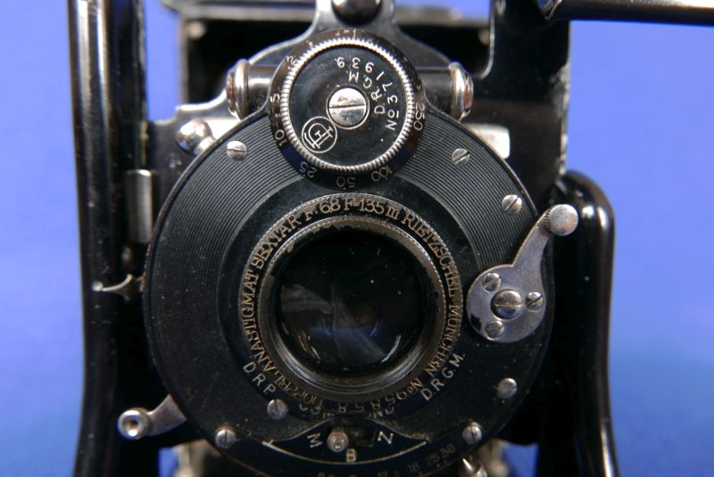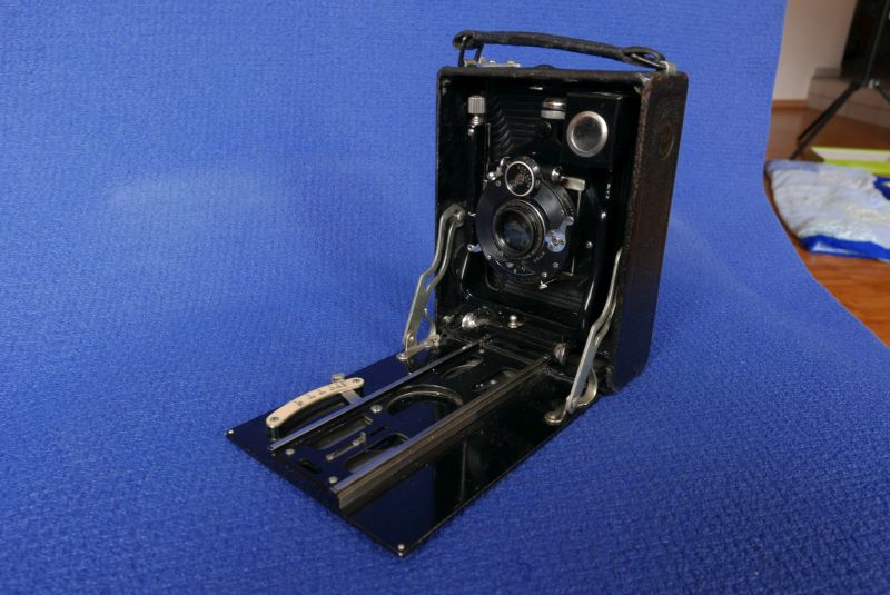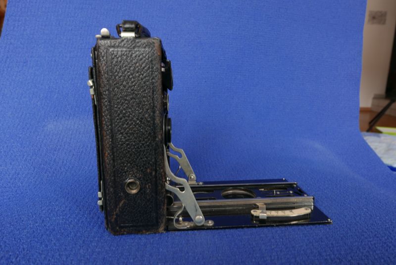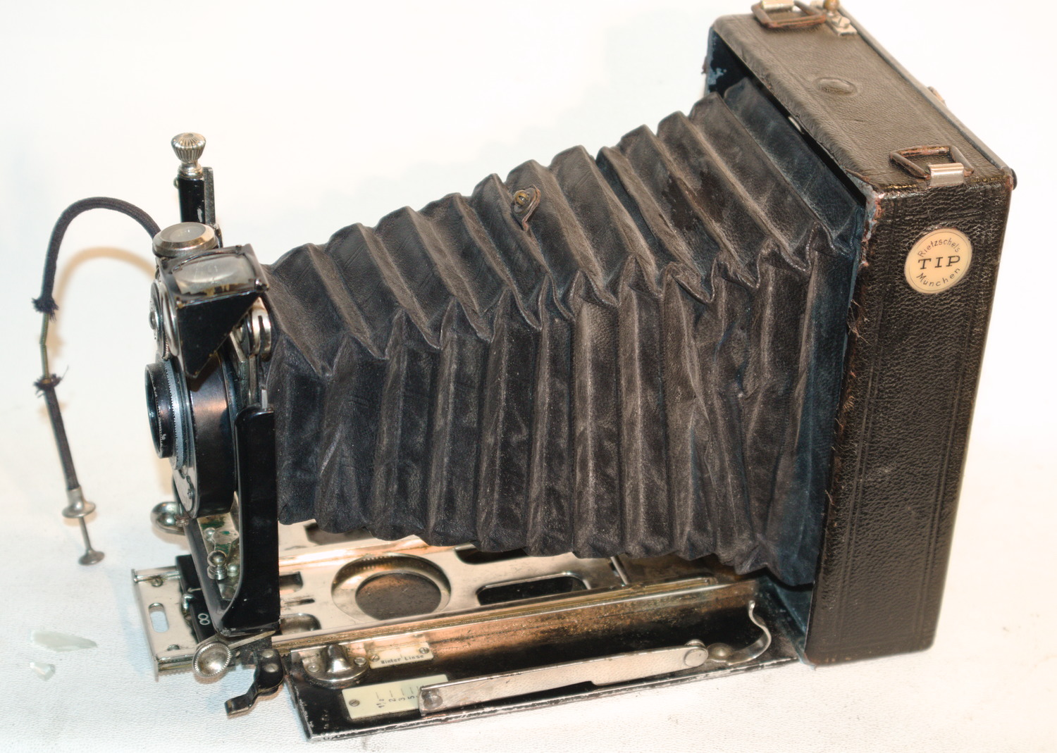 Rietzschel Tip Radial 9x12 / Nr. 1032xx / Rietzschel Doppel-Anastigmat Sextar 6,8 135mm / Compound (der Nummer nach von 1912). Ich gehe davon aus, dass sowohl Rückwand, als auch Verschluss und Objektiv original zur Kamera gehören: