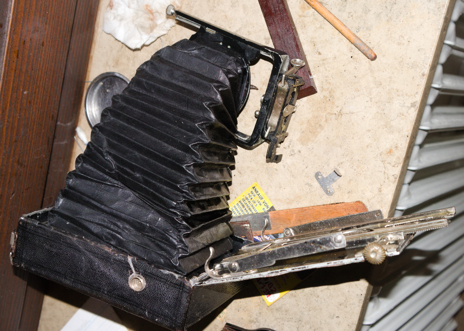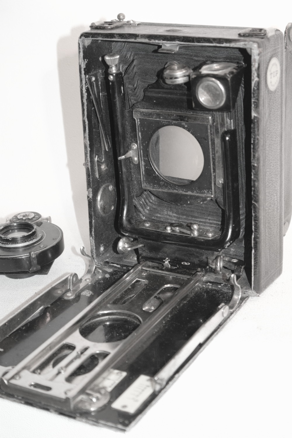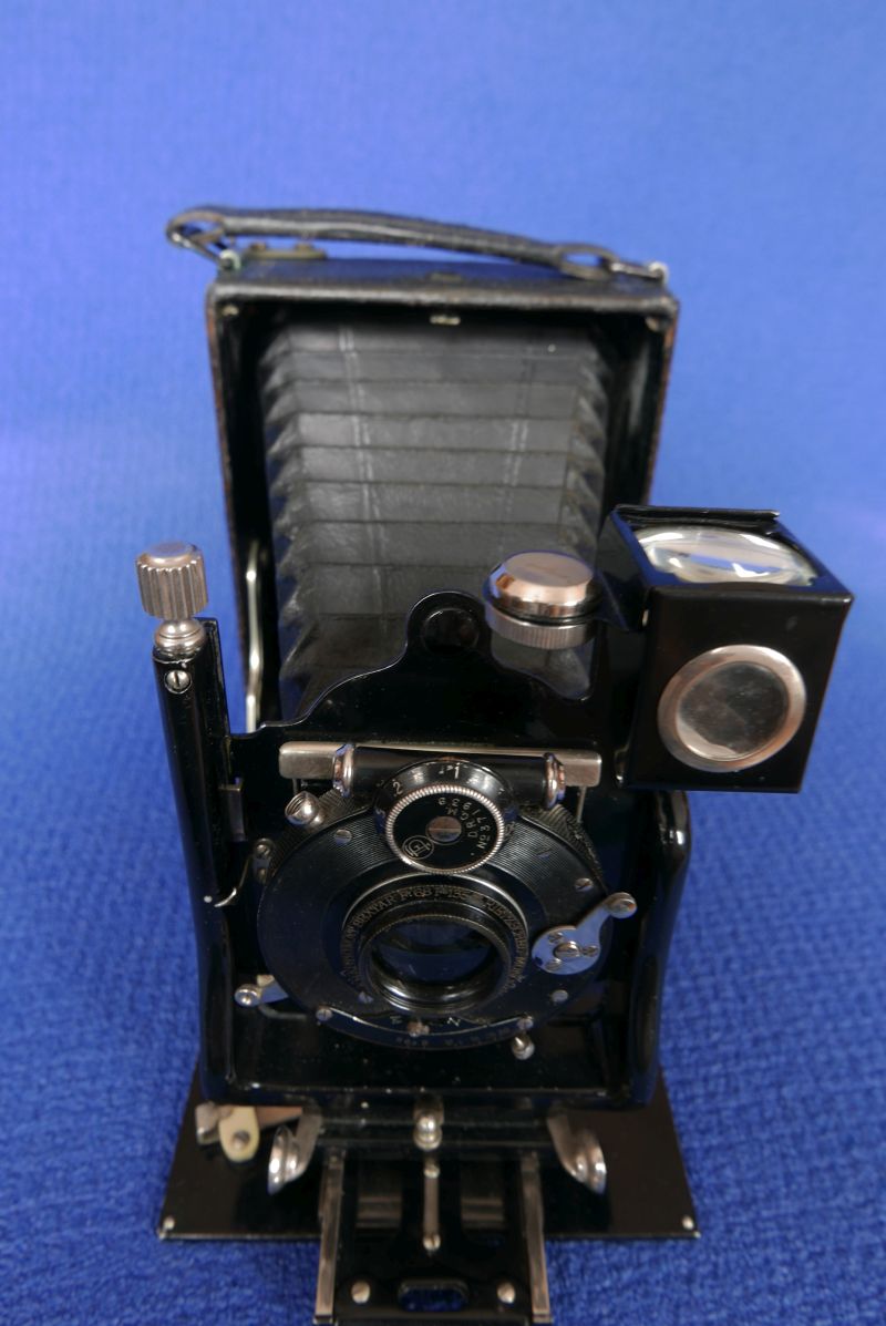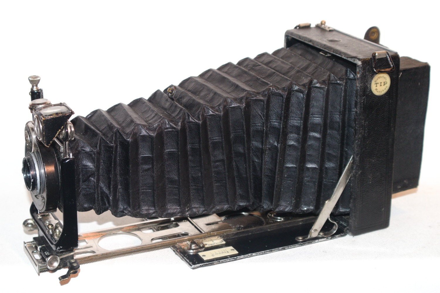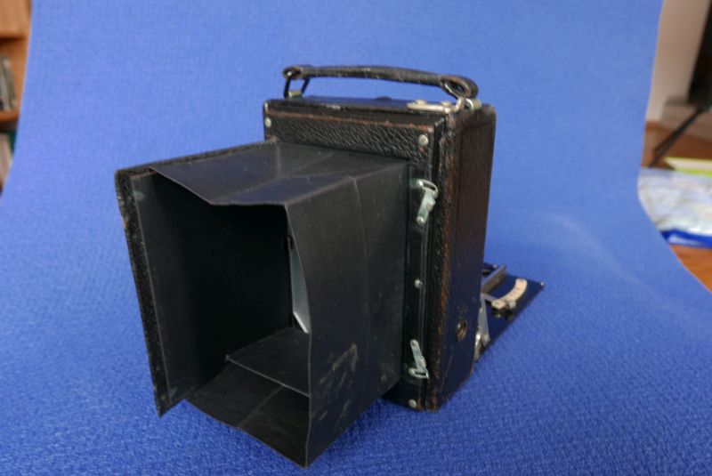 Rietzschel Tip Radial 9x12 / Nr. 1032xx / Rietzschel Doppel-Anastigmat Sextar 6,8 135mm / Compound (der Nummer nach von 1912). Ich gehe davon aus, dass sowohl Rückwand, als auch Verschluss und Objektiv original zur Kamera gehören: