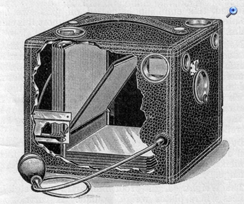 genau genommen, waren alle frühen Kameras erst einmal Box-Kameras, also rechteckige Kästen mit Objektiv vorn angesetzt. Hinten eine Platte / Mattscheibe (wechselbar). Nach jeder Aufnahme musste die belichtete Platte lichtdicht entnommen werden.
