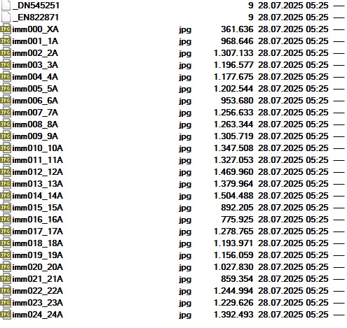 der Film ist fertig und die Scans online abrufbar. In der Tasche mit den Negativen und den Papierabzügen findet sich auch ein Zettel mit dem Link (ein QR-Code ist ebenfalls verhanden) zu der Seite auf der die eingescannten Bilder abgerufen werden können. Benötigt wird die Auftragsnummer und ein auf dem begefügten Zettel aufgedruckter Sicherheitscode. Man erhält nach Eingabe der genannten Daten eine .zip Datei. Bei meinem 24er Kodak Farbfilm sieht das entpackt so aus