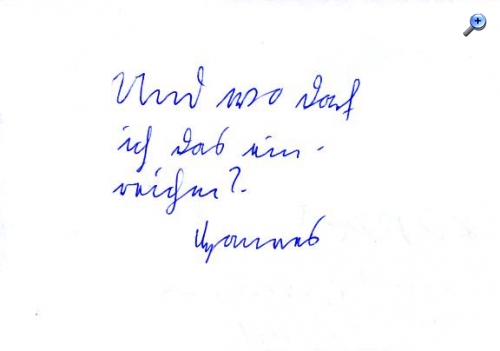 Hallo, Roland! Muss Dich enttäuschen ... sütterlinschriftlich bin ich ein Fake ;) . Geboren 1949, habe ich an der Volksschule lateinische Schrift beigebracht bekommen. Irgendwann mit vielleicht 11-12 Jahren ließ ich mir die Kurrentschrift zeigen, evtl. auch von meiner Großmutter (geboren noch 19. Jhd). Das Beispiel lautet: "Und wo darf ich das einreichen? Hannes".