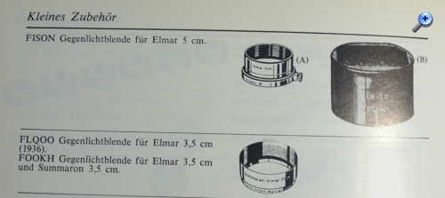 Ich hatte schon überlegt, ob dieser Zylinder-Teil eine Sonnenblende oder sonstiger Adapter sein könnte, denn es gab Zylinder-Gegenlichtblenden damals schon, z.b. Blende Fison oder FLQOO für Elmar 5 cm.