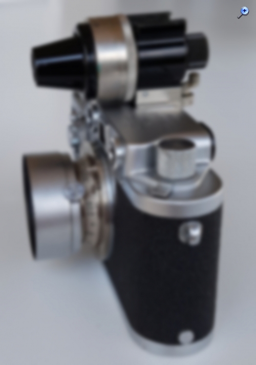 der Aufsatzsucher ist mit Vidom wohl exakt identifiziert und damit landet man am ehesten bei der Leica. Ich meine auch erkennen zu können, dass der Umhänge-Riemen an den Ösen befestigt ist. Und was das dicke Objektiv betrifft, so muss es ja nicht immer das Standard-Elmar sein - gerade bei der Verwendung des Vidom-Suchers.