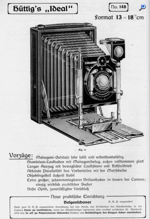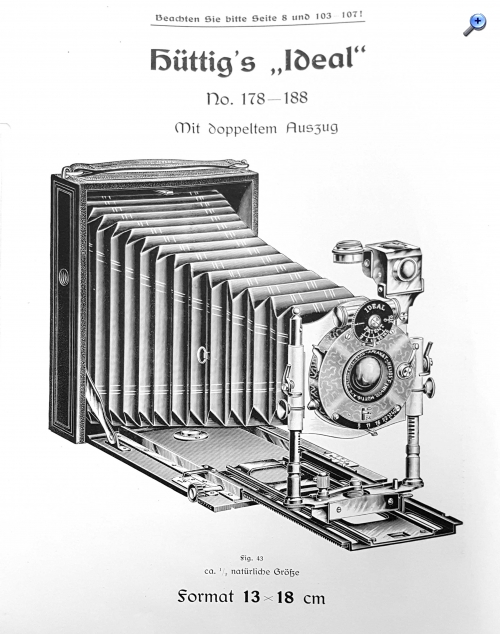 Bei Hüttig-Kameras gab es zahlreiche Änderungen, sodass die Abbildungen in den Katalogen oft abweichen (haben wir kürzlich bei der Vorstellung der Ideal 10x15 von Holger gesehen).