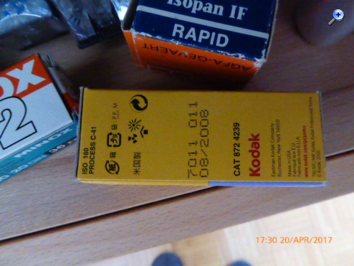 Okular:Hallo ! Ich habe eben wieder einen Film bei Rossmann und zwar einen APS-Film der ist fast 3 Wochen dort aber auch heute immer noch nicht fertig also das ist enttäuschend.