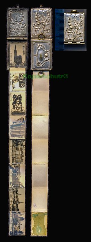 wie man vielleicht bemerkt hat, habe ich Freude darin gefunden alte Aufnahmen und Fotoartikel mit in meine Sammlung zu nehmen. Gerade gestern bekam ich ein keines Souvenier-Album aus Straßburg, wobei klein hier durchaus auf die Dimensionen bezogen ist, das Album ist nur knapp 2,5 cm lang. Sowas war in den späteren 1800detern wohl recht beliebt.