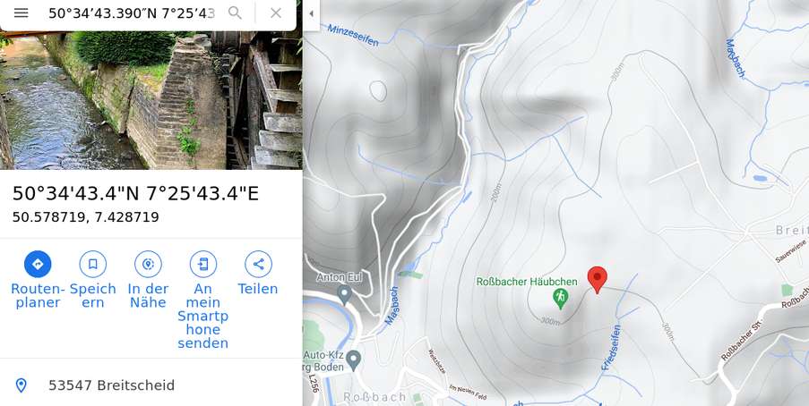 Hier habe ich das Sonderzeichen für "Bogensekunden" auf der Tastatur nicht gefunden, daher den String aus https://blog.deinhandy.de/google-maps-koordinaten-anzeigen-eingeben-so-funktionierts kopiert und angepasst.