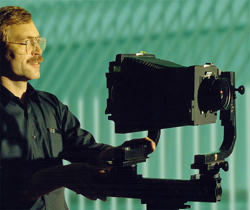 Ein Bild aus dem Jahr 1988 beim Aufbau der Linhof Kardan Master GTL 13x18 cm mit dem Schneider Symmar 1:6,8 / 355 mm, aufgenommen mit der Hasselblad 500C mit Sonnar 1:4 / 150 mm bei Blende 5,6