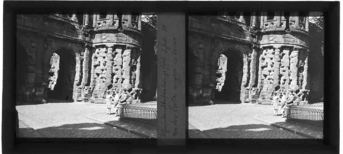 Die Bilder sind, denke ich eher private Fotos, ich habe bis jetzt nur eins gescannt, darauf erkennt man eine Familie vor der Porta nigra, bzw. vor einem Tor davon, auf Postkarten wäre wohl das ganze Gebäude.