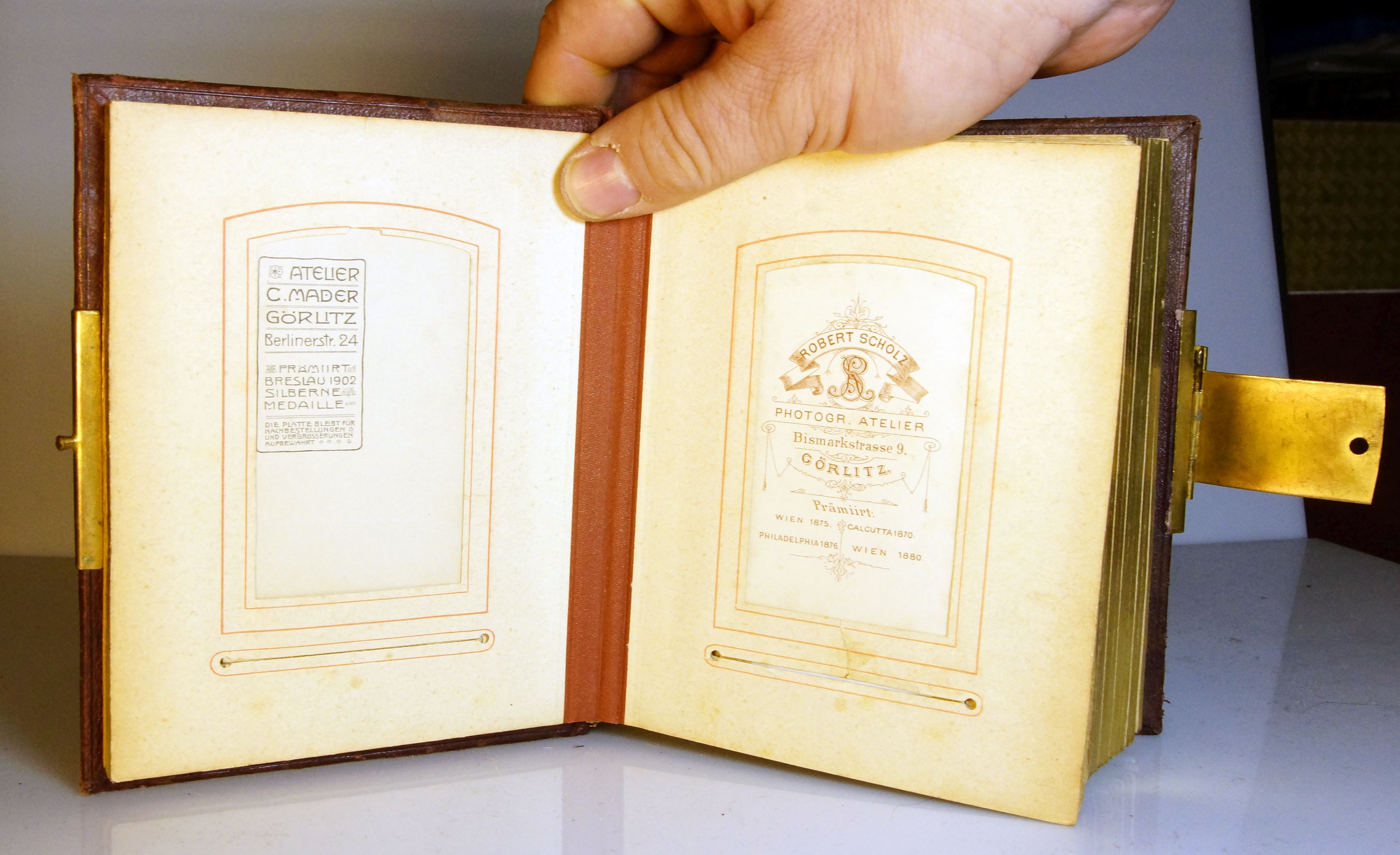 Hallo, danke für die Antwort, auch wenn das mit meiner Frage nicht weiterhilft, mein Album ist wie du es beschrieben hast, Die Seiten sind aus dickem Karton mit einem Ausschnitt für die Bilder, darüber ist beidseitig Papier mit einer Maske angebracht, die Bilder lassen sich dann durch einen vorgesehenen Schlitz einschieben, aber einige Bilder sind deutlich zu lang, so das sie nicht in die Aussparung passen, dadurch wird das Album natürlich schnell zu Dick zum schliessen. Ich bin wie gesagt nicht sicher das wirklich alle Bilder zum Album gehört haben, oder es es von einem Käufer geleert und dann wieder befüllt wurde, dagegen spricht das alle Bilder aus Dresden oder Zittau stammen, dafür das sie halt nicht alle passen, kann aber auch sein, das sie einfach reingesteckt wurden, egal obs passt oder nicht. Leider sind im Album keinerlei Notizen der ursprünglichen Benutzer. Wenn ich noch bissel Zeit habe mach ich ein paar Bilder, das Album musste ich zwar leicht restaurieren, aber alles in allem, ist es jetzt, mit passenden Bildern bestückt, sehr hübsch.