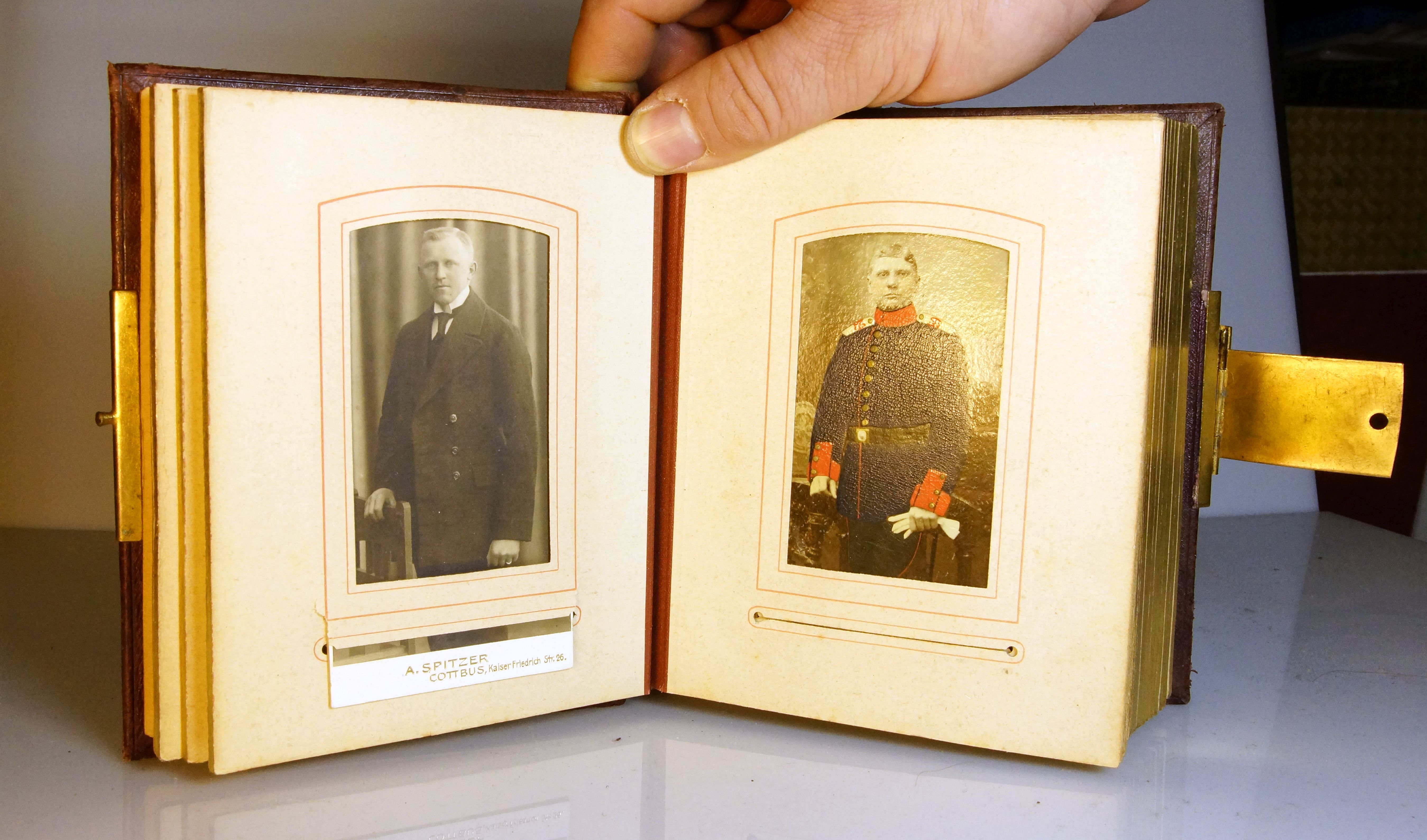 Leider ist es nicht selten so, dass solche alten Alben durch Vorbesitzer umge-fummelt wurden. Dann passt vieles nicht mehr. Manchmal kann man versuchen, anhand der Personen ( Motive) einen Zusammenhang zu erkennen und bestimmte Personen / Motive als nicht hinpassend zu bestimmen.