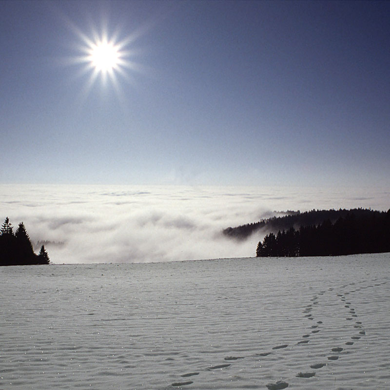 ... Zu Deiner Frage nach den Spuren im Schnee: Wer? - meine Frau und ich bei einem vorweihnachtlichen Winterspaziergang über dem Inversionsnebel im Donautal auf dem Lichtenberg bei Linz (927 m, 48°23,08 N, 14°15,18´O). Eine Wettersituation, die bei uns im Donautal im Winter oft vorkommt - unten -7°C und Nebel, oben +5°C im herrlichen Sonnenschein. Das "Was" in Deiner Frage dürfte damit auch geklärt sein....
