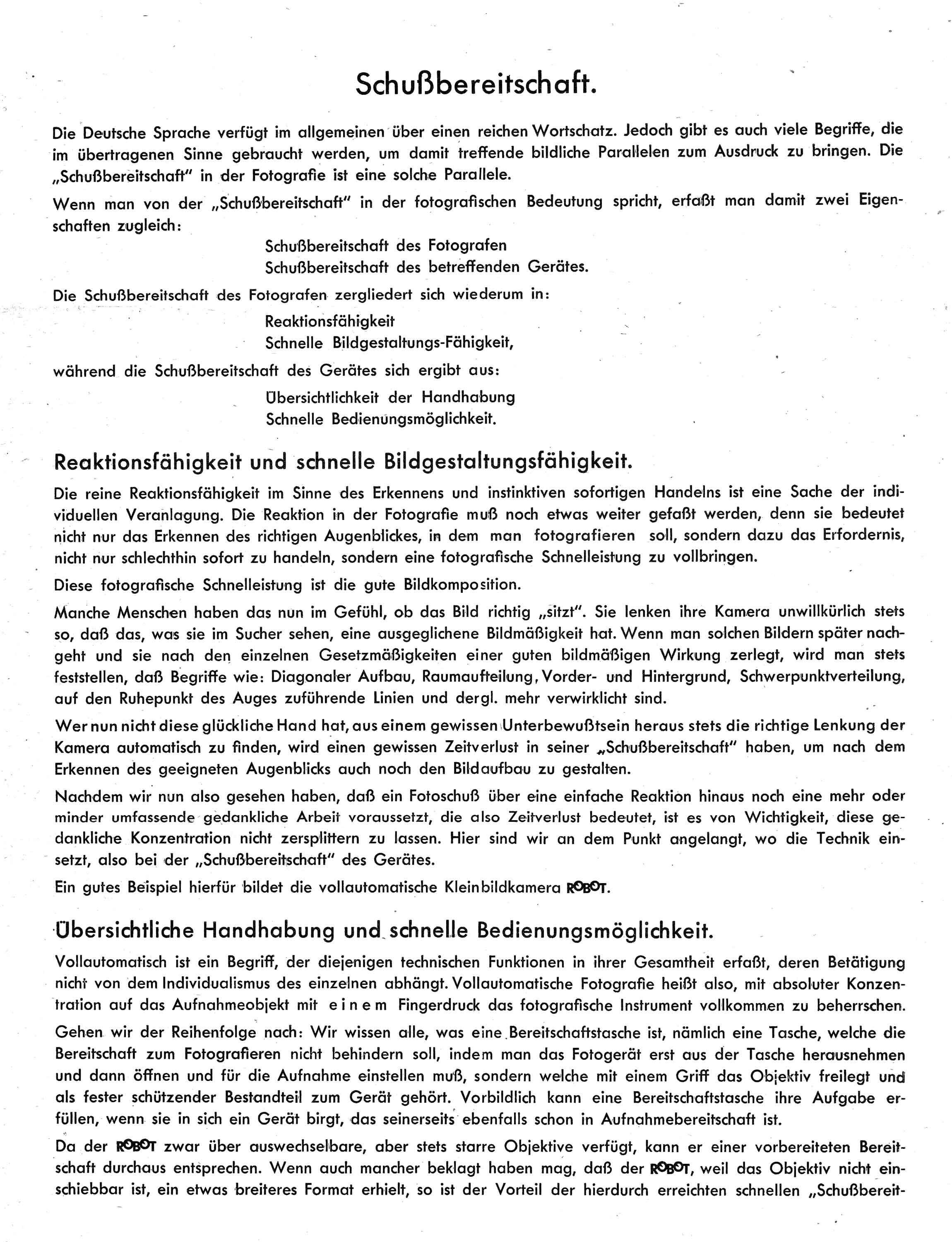 Vergleicht man viele Fotoapparate der 50iger, 60iger Jahre mit heutigen Digitalkameras und manchen Handys, wird klar, die alten Kameras waren teilweise schneller, um auf eine kurze Situation reagieren zu können.