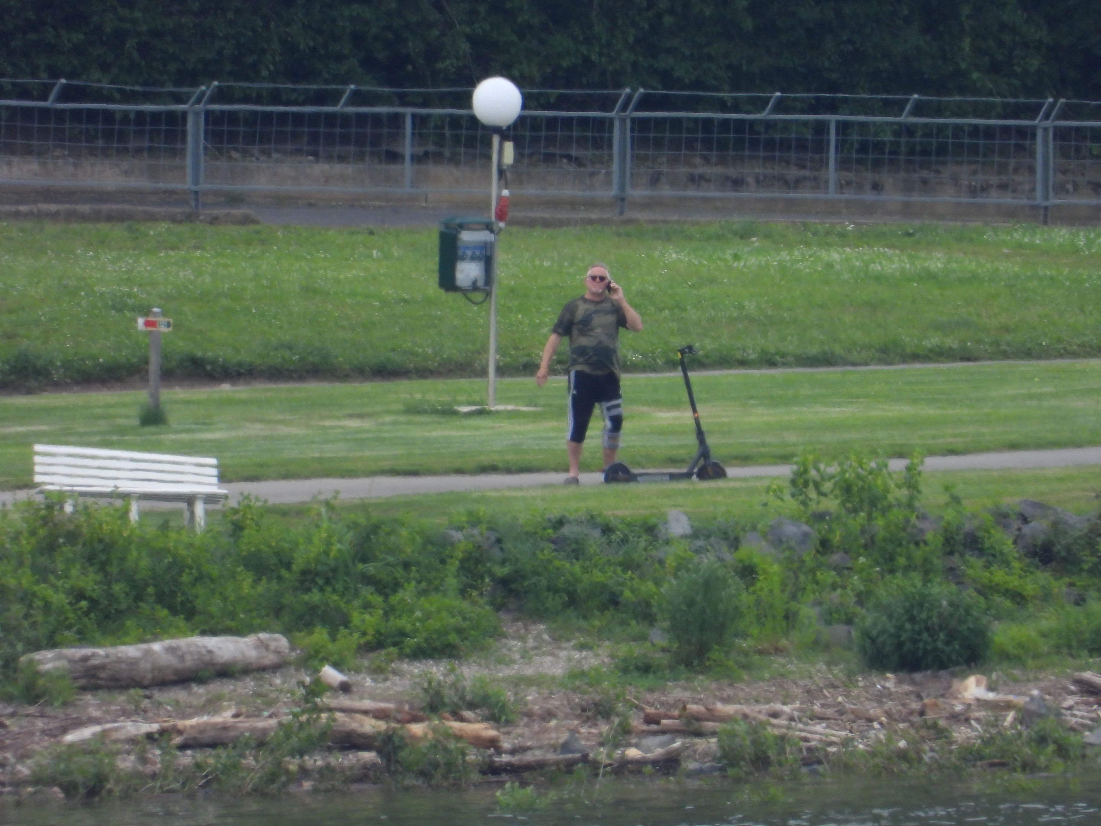 Hier habe ich meinen Bruder auf der schräg gegenüberliegenden Rheinseite - Entfernung ca. 1,3 km - fotografiert.