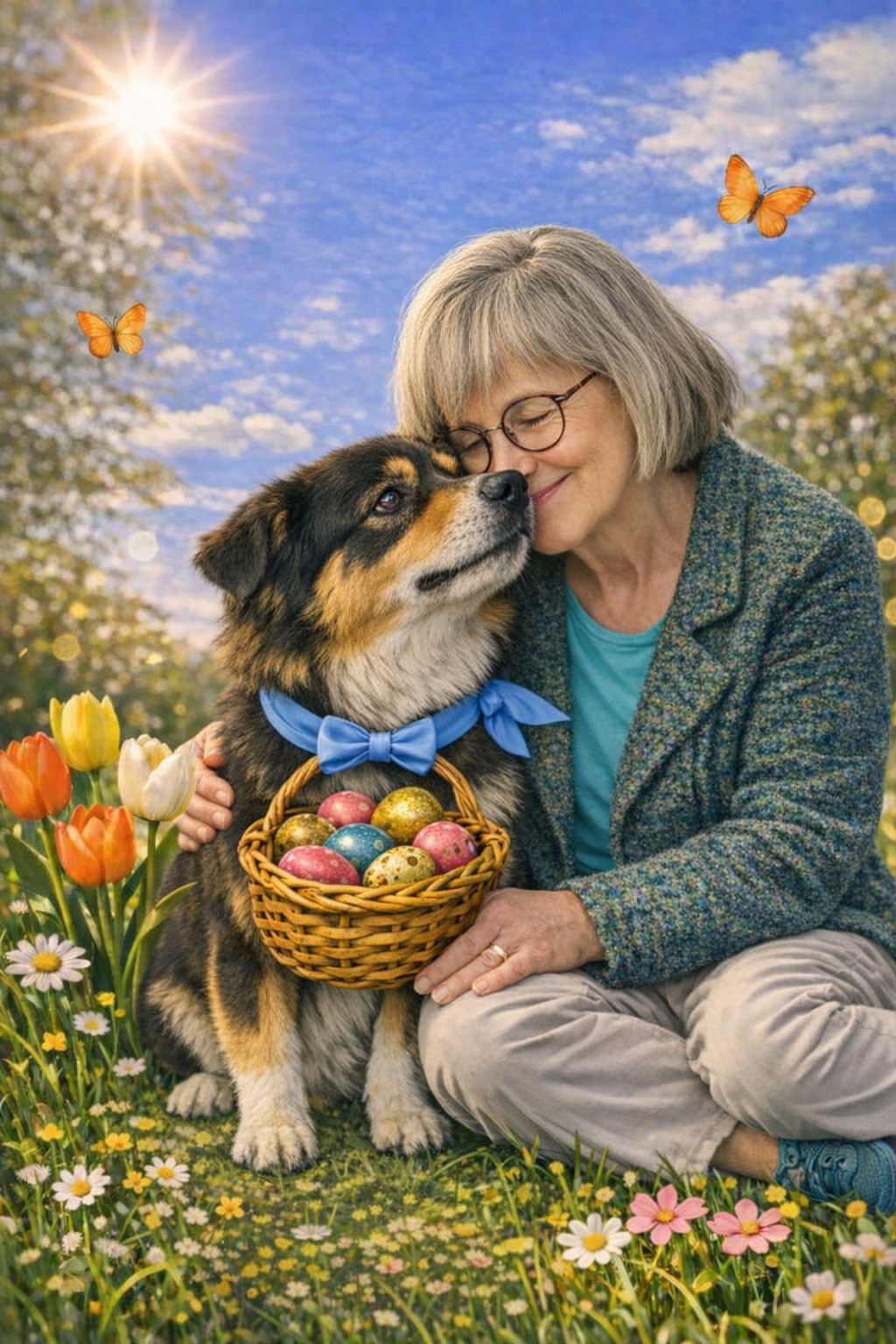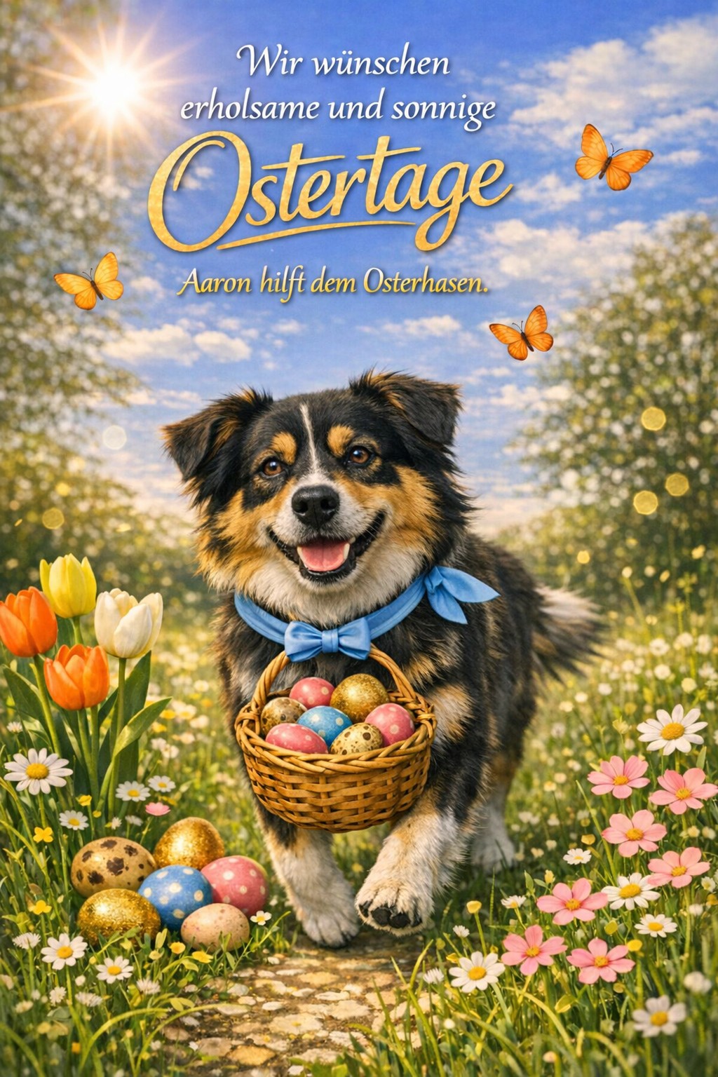 macht alles die KI. Aus einem ausgewachsenen Hund ein Osterhasen-Hündchen