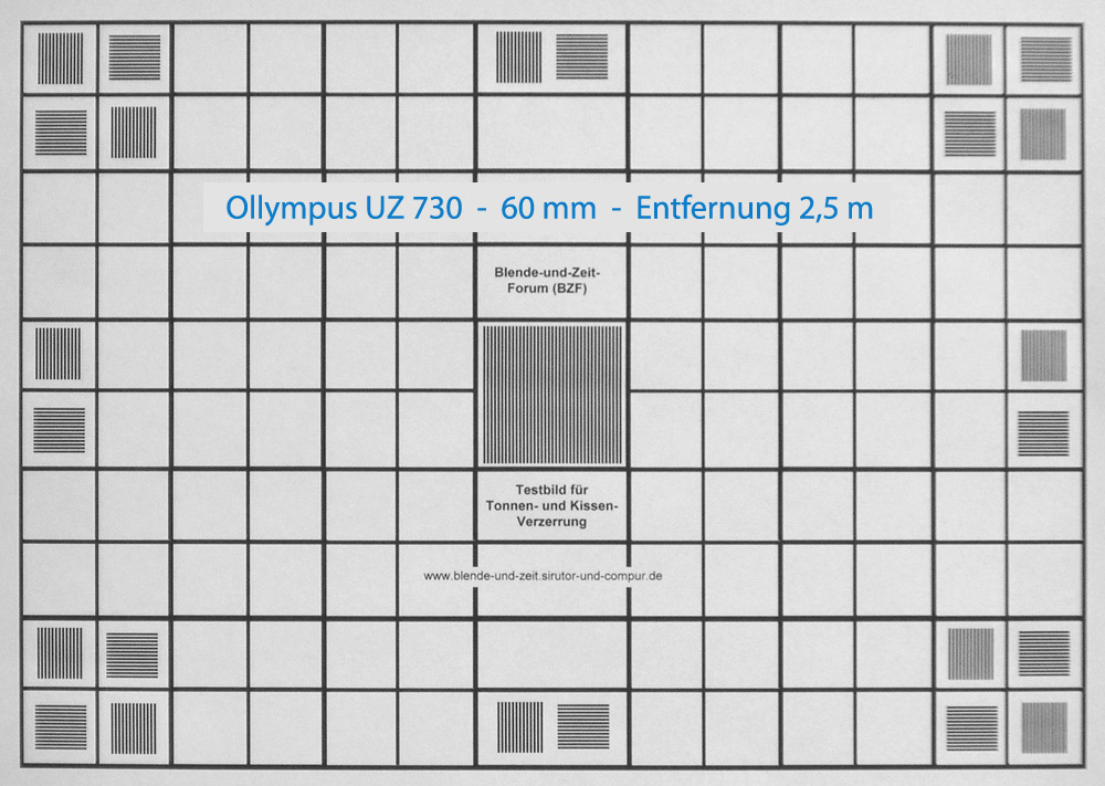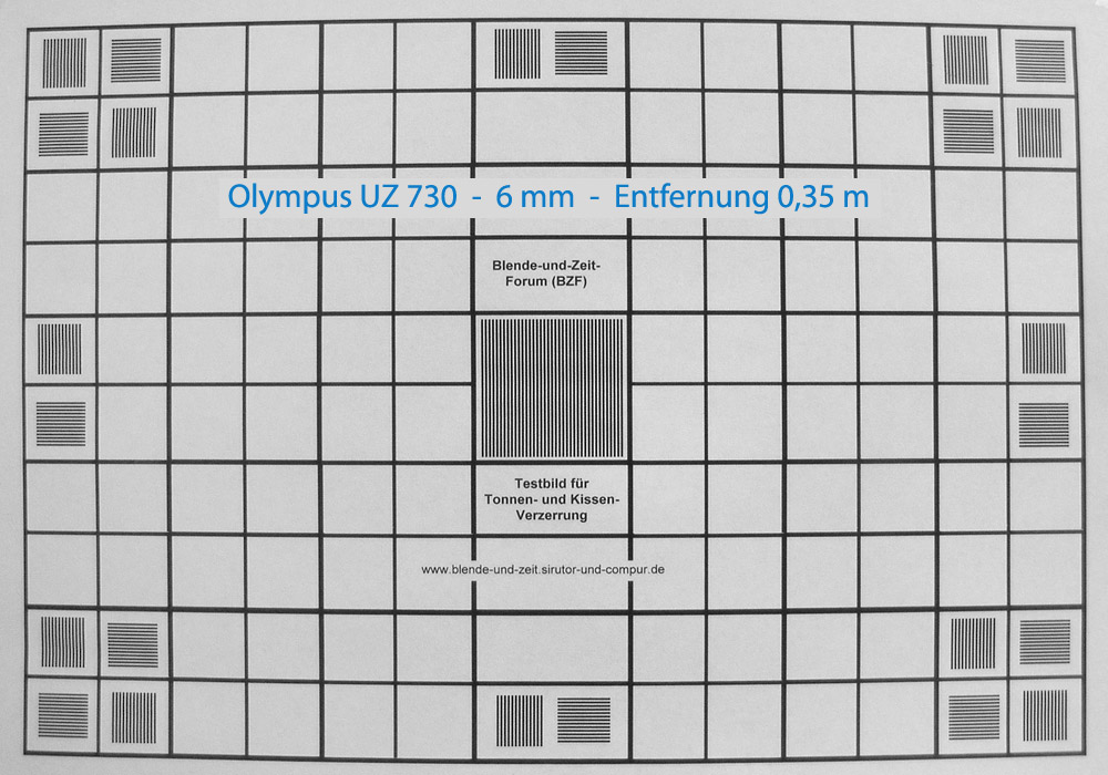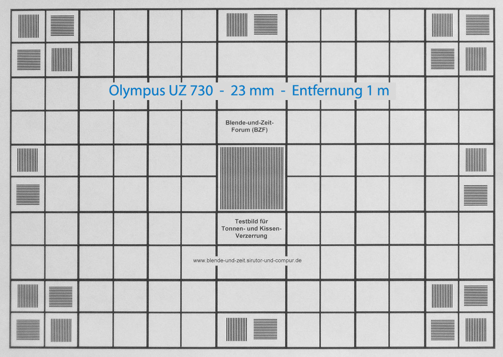 Hier der Test meiner "uralten" Olympus Ultrazoom 730 mit 10fach Zoomobjektiv, Baujahr 2003, auf Verkrümmungen: