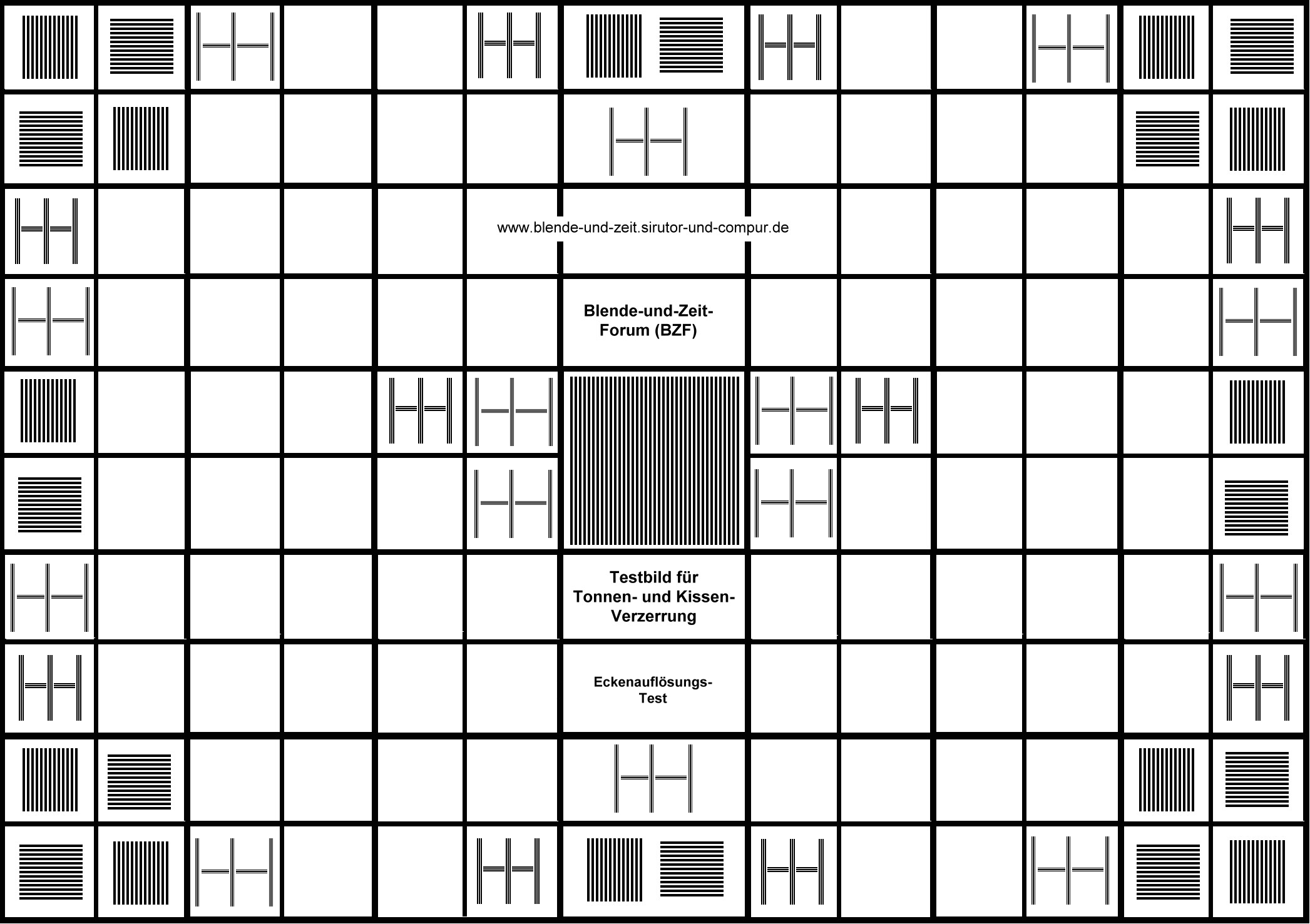 Testbild für Tonnen- und Kissen-Verzerrung und Dejustage. Version 2