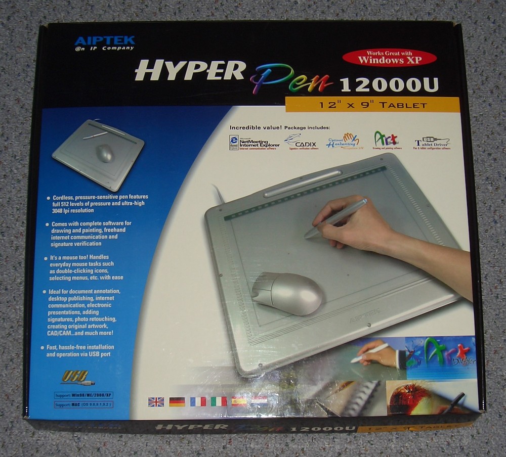 Ich habe dieses "Aiptek HP12000U Graphic Tablet" bekommen,das bei einem Arbeitskollegen unbenutzt im Schrank war. Vor ein paar Monaten habe ich mal selber nach sowas geguckt aber da gabs nur so kleine wie Postkartengröße und dieses Teil von Aiptek ist mehr als A4. Gibts hier jemand der solche Tablets benutzt und sich mit solchen Dingern auskennt ? Denn ich habs bisher noch nicht ausprobiert,weil ich nicht weiß wie man damit richtig umgeht.