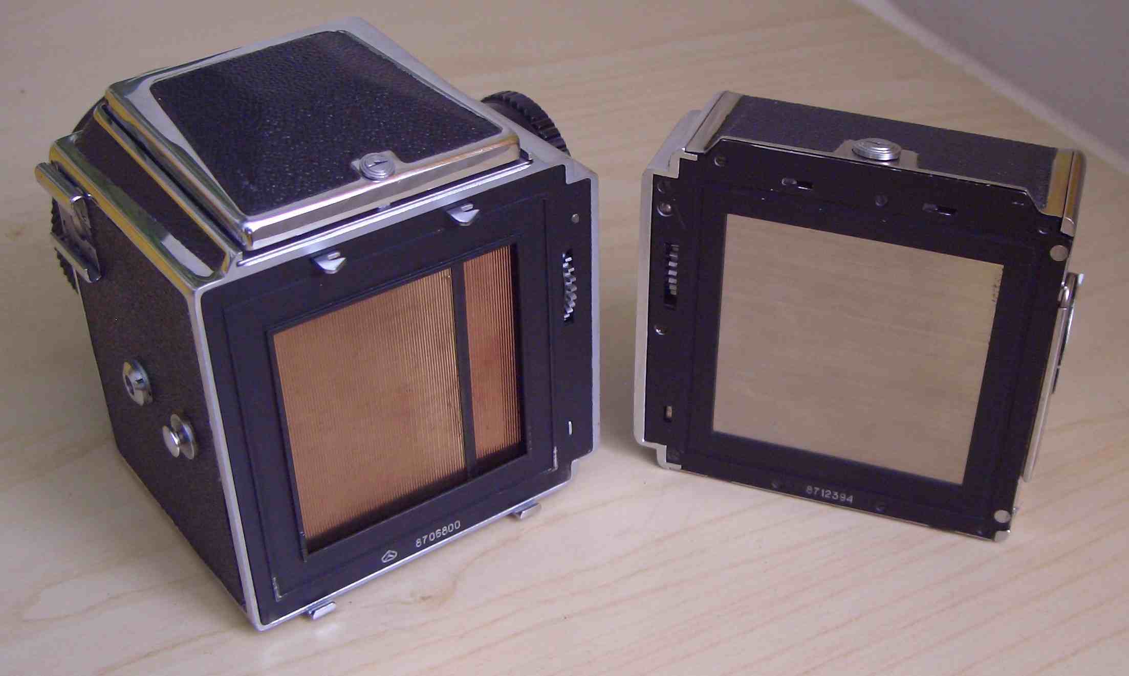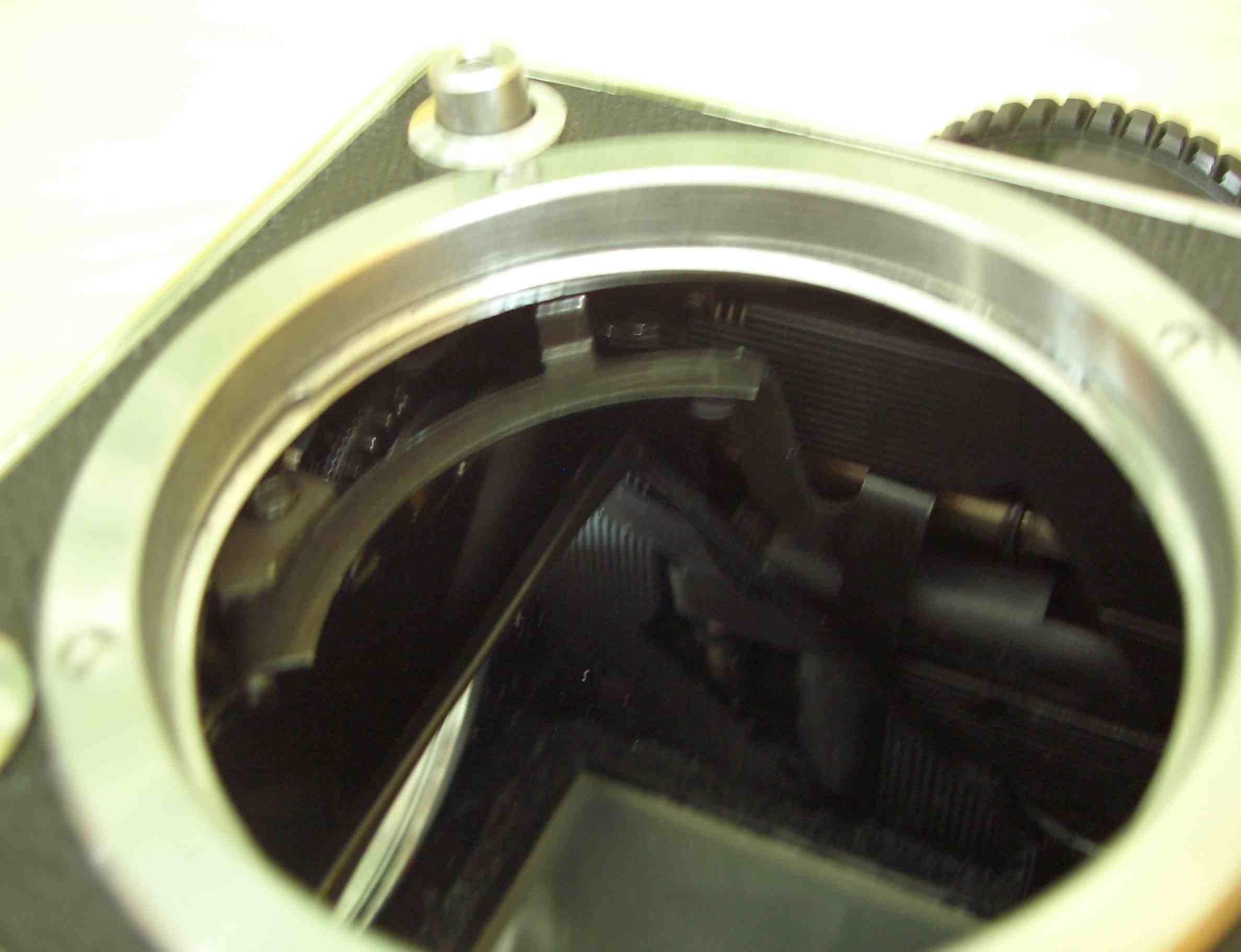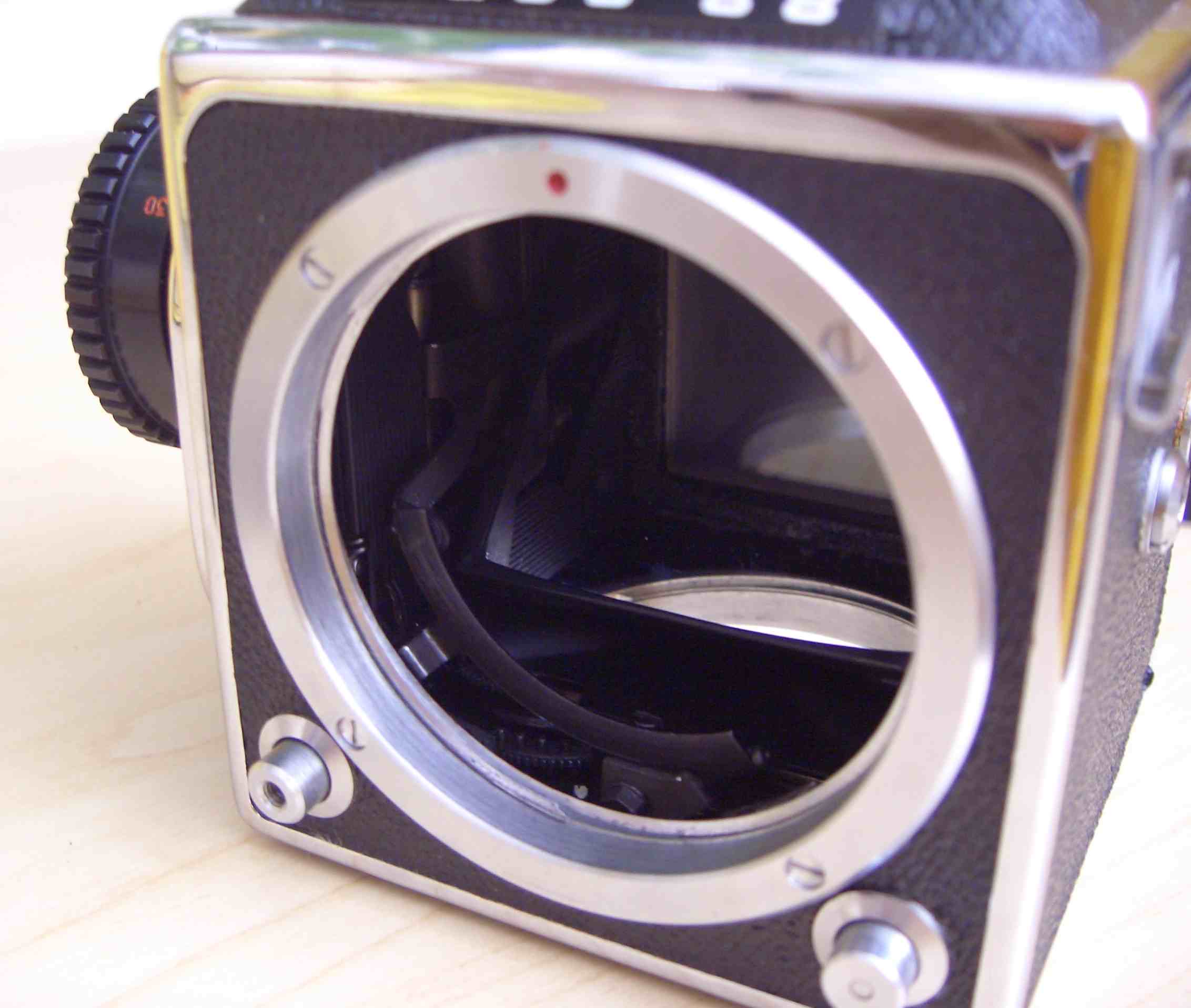 da ich die Kamera nicht habe, kann ich auch nicht sagen, ob auf dem einen Photo der Verschlussvorhang in der richtigen Endstellung steht. Irgendwie sieht es aus, als wenn der Vorhang in einer Ablaufposition hängen geblieben ist.