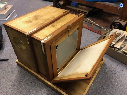 Ich bin auch wieder mal da. Hatte in letzter Zeit sehr viel anderes um die Ohren. Nun wird es wieder etwas ruhiger und ich kann mich mehr meinen Hobby widmen. Ich möchte eine Daguerre Camera nachbauen (wie im Anhang. Habe aus diesen Gründen schon einiges an Material zusammengetragen. Mir sind jedoch einige Dinge unklar, vielleicht kann mir da ja von euch jemand helfen. Hat jemand Infos über die genaue Größe der Kamera? Die Holzart (vermutlich einfache Fichte). Wie war das Rückteil genau aufgebaut - ist da ein Umlenkspiegel unter 45° um von oben drauf schauen zu können? Wie war das Plattenmagazin - ähnlich wie bei späteren Nassplattenkameras?