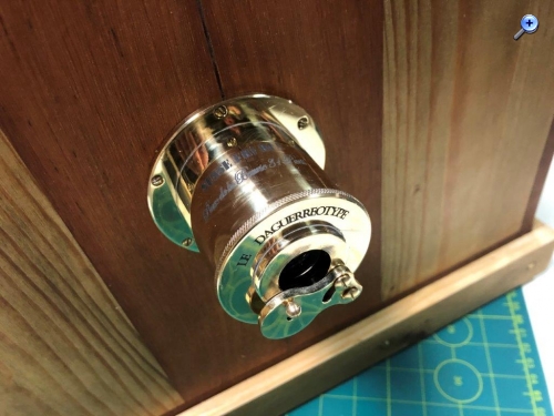 Möchte euch meinen Eigenbau nicht vorenthalten. Ist noch nicht ganz fertig. Beim Objektiv fehlen noch die Gravuren, Hinten fehlt der Spiegel und seitlich die berühmte Daguerre Plakette. Bei Finish für das Holz möchte ich auch noch etwas machen. Ansonsten bin ich sehr zufrieden damit.
