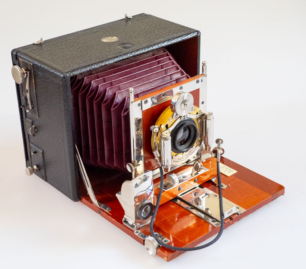 Pardon, Peter, über die Brennweitenangabe hatte ich hinweggelesen... Die 12cm sind für 9x12 ja wirklich etwas kurz. Eins der Exemplare im erwähnten Ausstellungskatalog ist allerdings auch mit einem Goerz Celor 4,8/120 ausgestattet. Die zeitgenössischen Ernemann-Kataloge geben leider keinen Aufschluss. Ein früher, undatierter Katalog ("Liste 91", um 1905?) listet verschiedene (Ernemann-)Objektive auf, sinnigerweise aber ohne Angabe der Brennweite.... In einem späteren Katalog (1912) sind für die Heag VI 9x12 nur Objektive mit 135 sowie ein Tessar 145 mm vorgesehen.