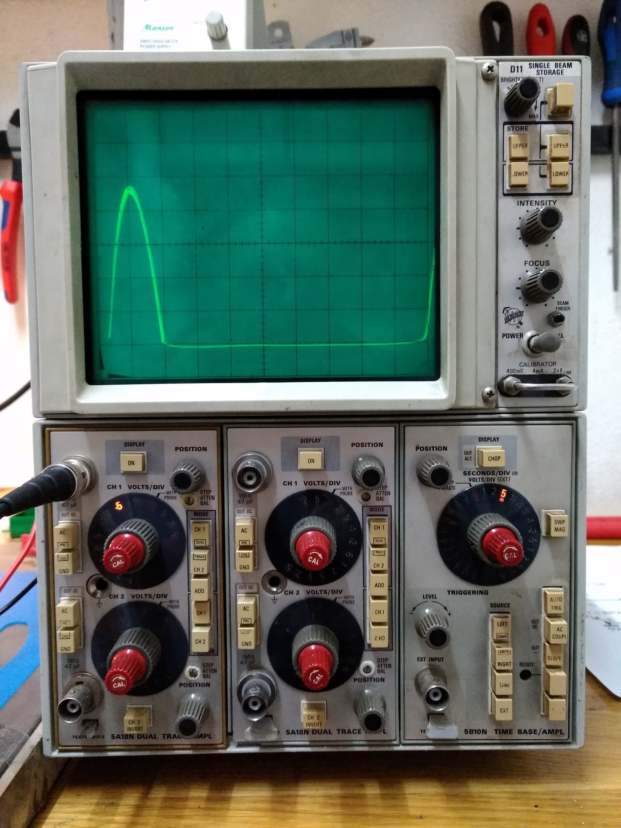 Ach ja, ein Oszilloskop (Tektronics) habe ich übrigens auch. Steht meistens unbenutzt herum: