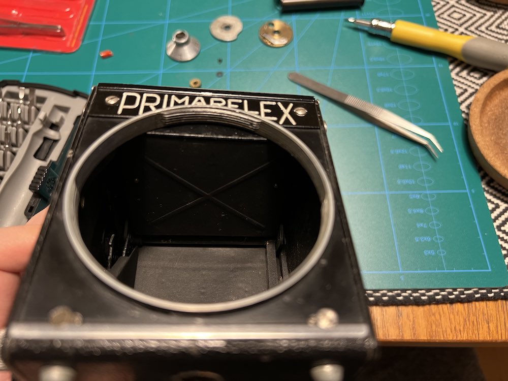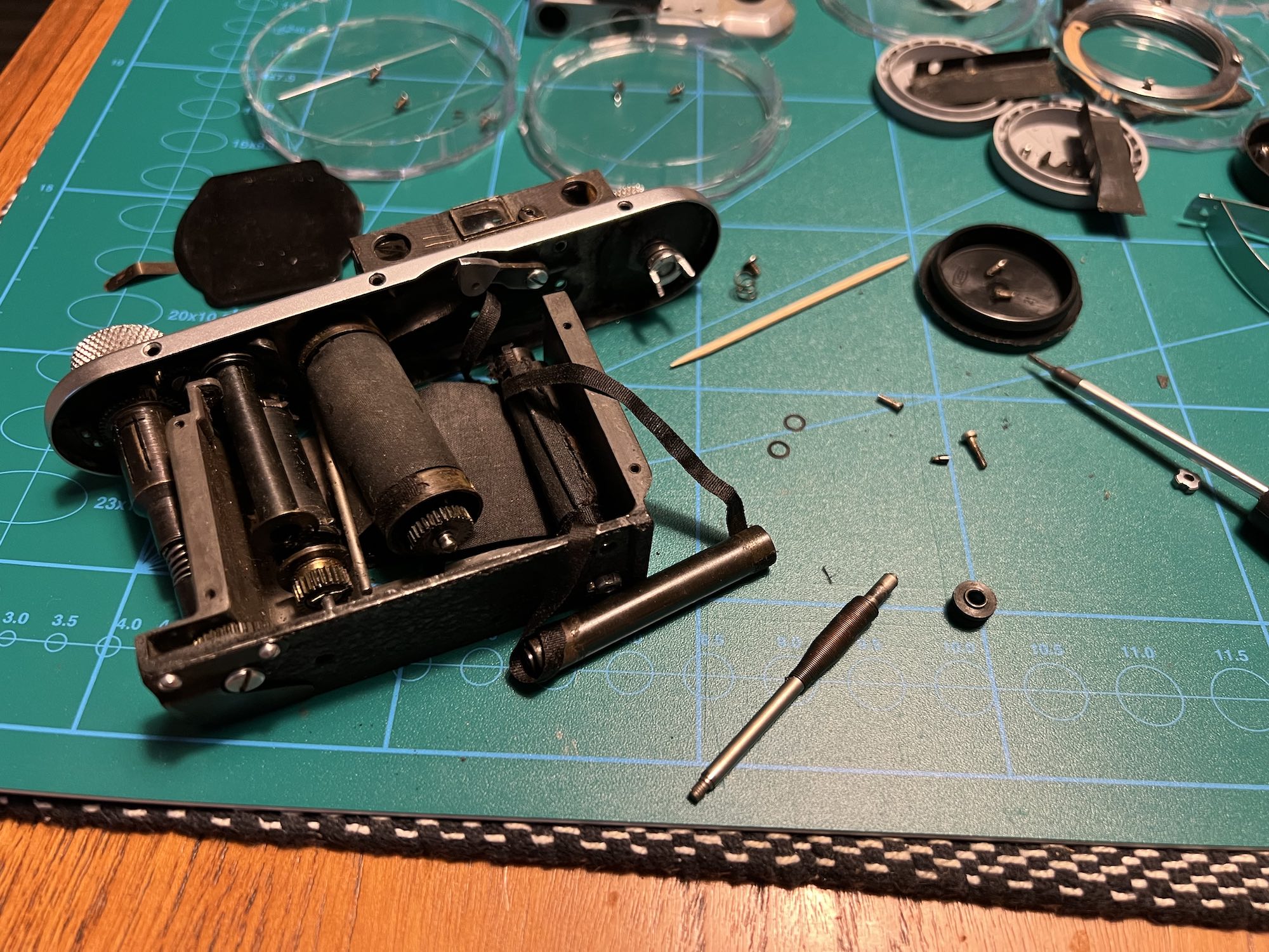 I hope it's something else, since it was a big job to get there. Do you have any ideas other than this spring? Also, how many screws to remove to get to the curtains? You showed a picture where almost all of the gears are removed, is that necessary or can I get the entire mechanism out of the camera shell?