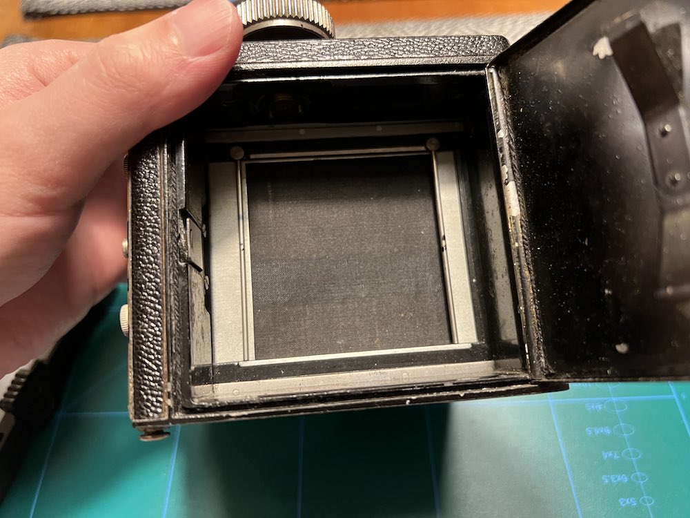 Both of the curtains are on top of eachother!! This is why I did not see anything when I looked inside the camera from the lens board side and tried to move the 2nd curtain up and down. So the first curtain is up and the second curtain is down, they are on top of each other in the same rails. I wanted to post this as soon as I got something to tell to you. I do not yet know where the 1st curtain is stuck, but this does not look like a very good situation.
