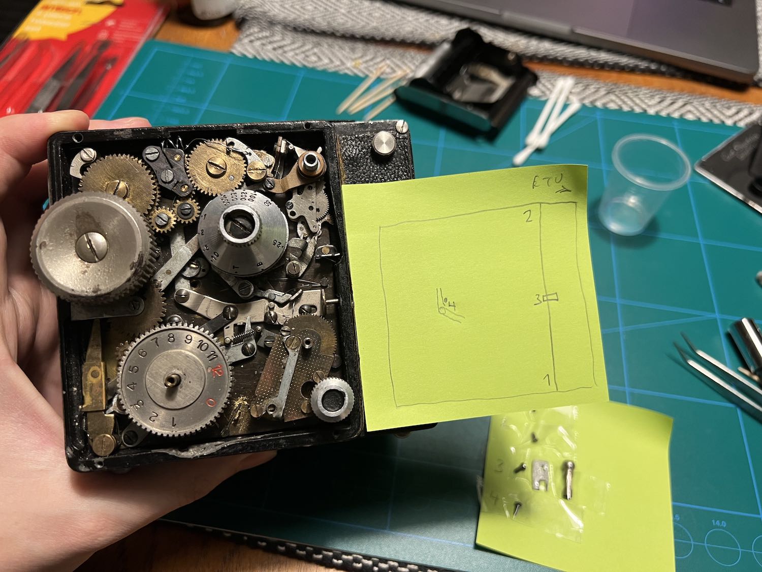 Now I have to figure out how to time the wheels – and put all the screws back. So it's better to put the shutter speed wheels back when the shutter is tripped?