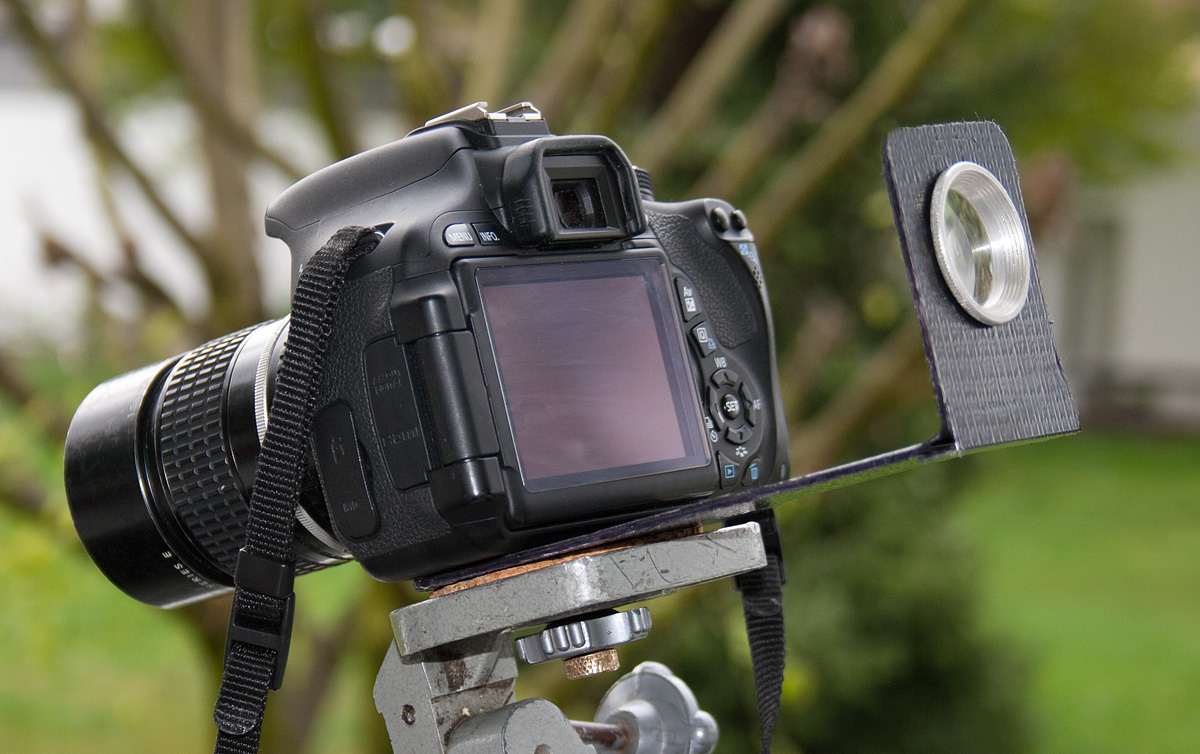 Ich zieh die Stativschraube nicht ganz fest, dann geht die Lupe leicht zum Wegschwenken. Ist aber nur bei Freihandaufnahmen nötig, damit man durch den Reflexsucher schauen kann. Ich hab auch mit einem Lichtschutztubus experimentiert für Videoaufnahmen. Ist aber nicht nötig, weil das Display der 600D automatisch an die Umgebungshelligkeit angepasst wird. Man sieht auch bei Sonnenlicht das Sucherbild ganz gut.