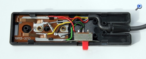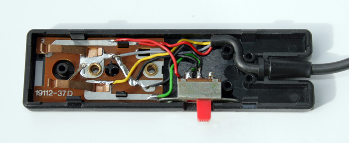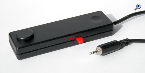 Als Basis fand die Kabelfernbedienung eines ausgedienten Diaprojektors Verwendung. Es ist aber auch jedes andere Gehäuse wie z.B. eine Computermaus o. Ä. denkbar.