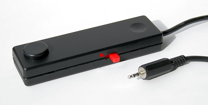Der Auslöser wird mit einem 2,5 mm Klinkenstecker mit der Kamera verbunden. Taste 1 entspricht dem leichten Druck auf den Kameraauslöser = Autofocus wird aktiviert. Taste festhalten und dann Taste 2 drücken = Verschluß wird ausgelöst. Für Langzeitbelichtung im "B" (Bulb) Modus wird der zweireihige Schiebeschalter S1+S2 umgeschaltet und der Verschluß bleibt bis zum Öffnen des Schalters geöffnet.