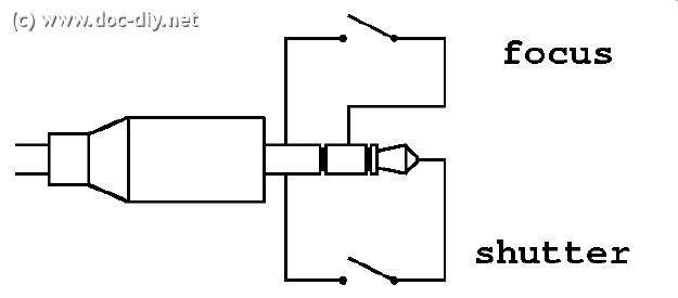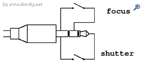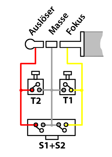 Der Vorteil dieser Schaltung ist aber darin zu sehen, dass ohne vorherige Fokussierung keine Verschlussauslösung möglich ist wie auch beim Auslöserknopf an der Kamera. Die Überprüfung der Steckerbelegung eines gekauften Kabelauslösers ergab auch diese Beschaltung.