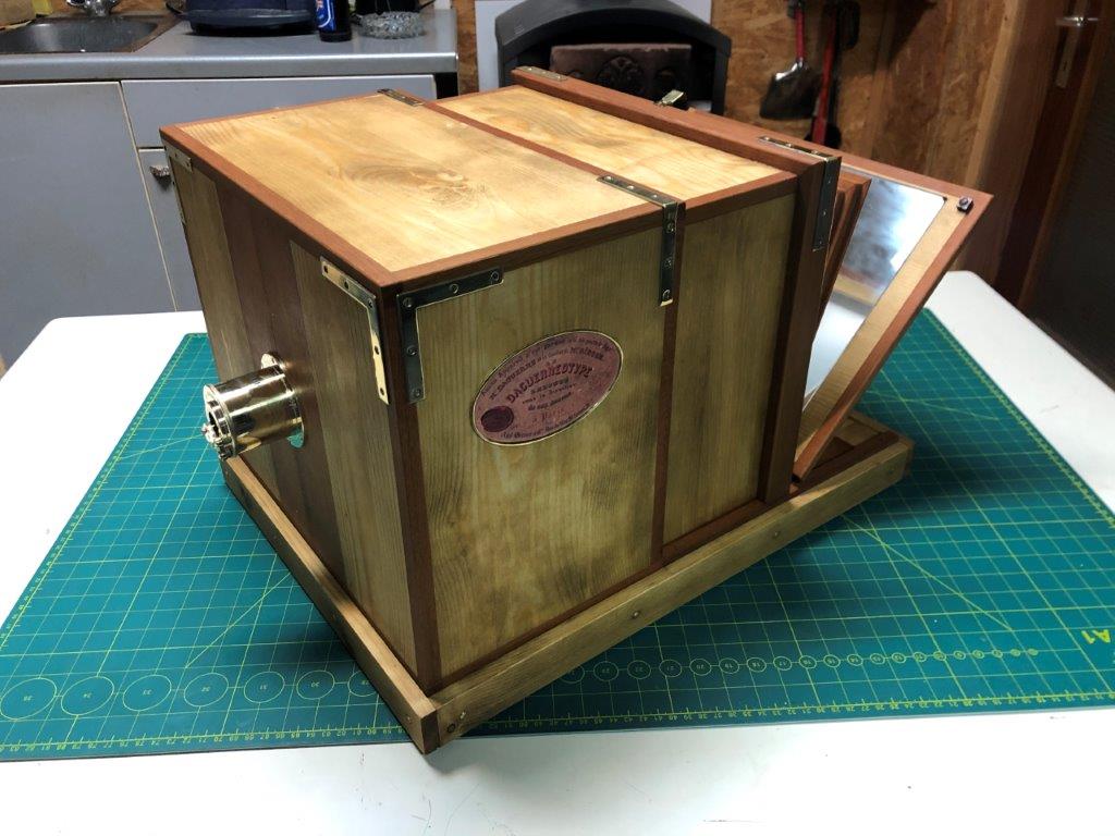 Ich bin auch wieder mal da. Hatte in letzter Zeit sehr viel anderes um die Ohren. Nun wird es wieder etwas ruhiger und ich kann mich mehr meinen Hobby widmen. Ich möchte eine Daguerre Camera nachbauen (wie im Anhang. Habe aus diesen Gründen schon einiges an Material zusammengetragen. Mir sind jedoch einige Dinge unklar, vielleicht kann mir da ja von euch jemand helfen. Hat jemand Infos über die genaue Größe der Kamera? Die Holzart (vermutlich einfache Fichte). Wie war das Rückteil genau aufgebaut - ist da ein Umlenkspiegel unter 45° um von oben drauf schauen zu können? Wie war das Plattenmagazin - ähnlich wie bei späteren Nassplattenkameras?