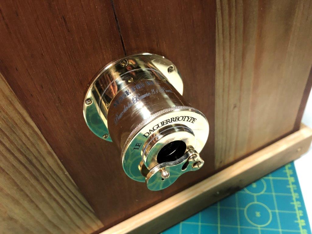 Möchte euch meinen Eigenbau nicht vorenthalten. Ist noch nicht ganz fertig. Beim Objektiv fehlen noch die Gravuren, Hinten fehlt der Spiegel und seitlich die berühmte Daguerre Plakette. Bei Finish für das Holz möchte ich auch noch etwas machen. Ansonsten bin ich sehr zufrieden damit.