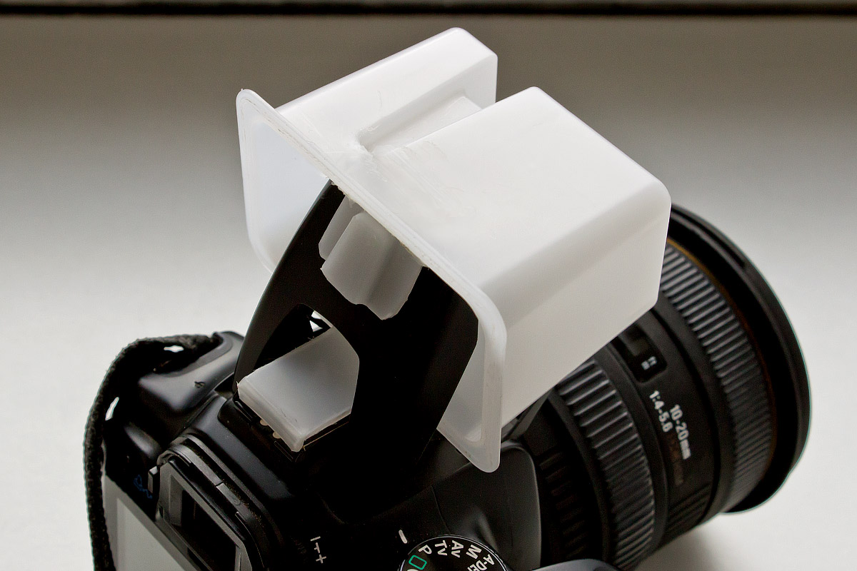 Ein einfacher selbstgebauter diffuser Streuvorsatz sorgt für eine sehr gleichmäßige Blitzausleuchtung:
