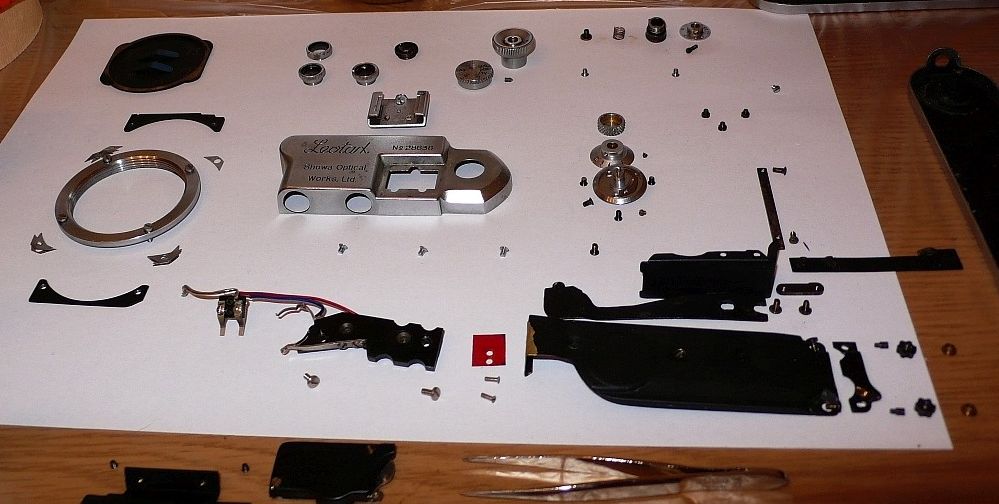 ich zeige nachfolgend, was einem bei der Restauration einer alten Kamera alles unterkommen kann. Als Ersatzteilspender für die hier vorgestellte Leotax Special D III (Leica III - Nachbau) stand eine weniger seltene Leo zur Verfügung. Teilweise sind die Bilder beschriftet. Wenn ich alles kommentieren würde, käme ich vom Hundertsten ins Tausendste... Bei Interesse können ja gezielt Fragen gestellt werden. Als ich die Kamera gekauft habe, war sie in einem jämmerlichen Zustand. Es ging einfach nichts.
