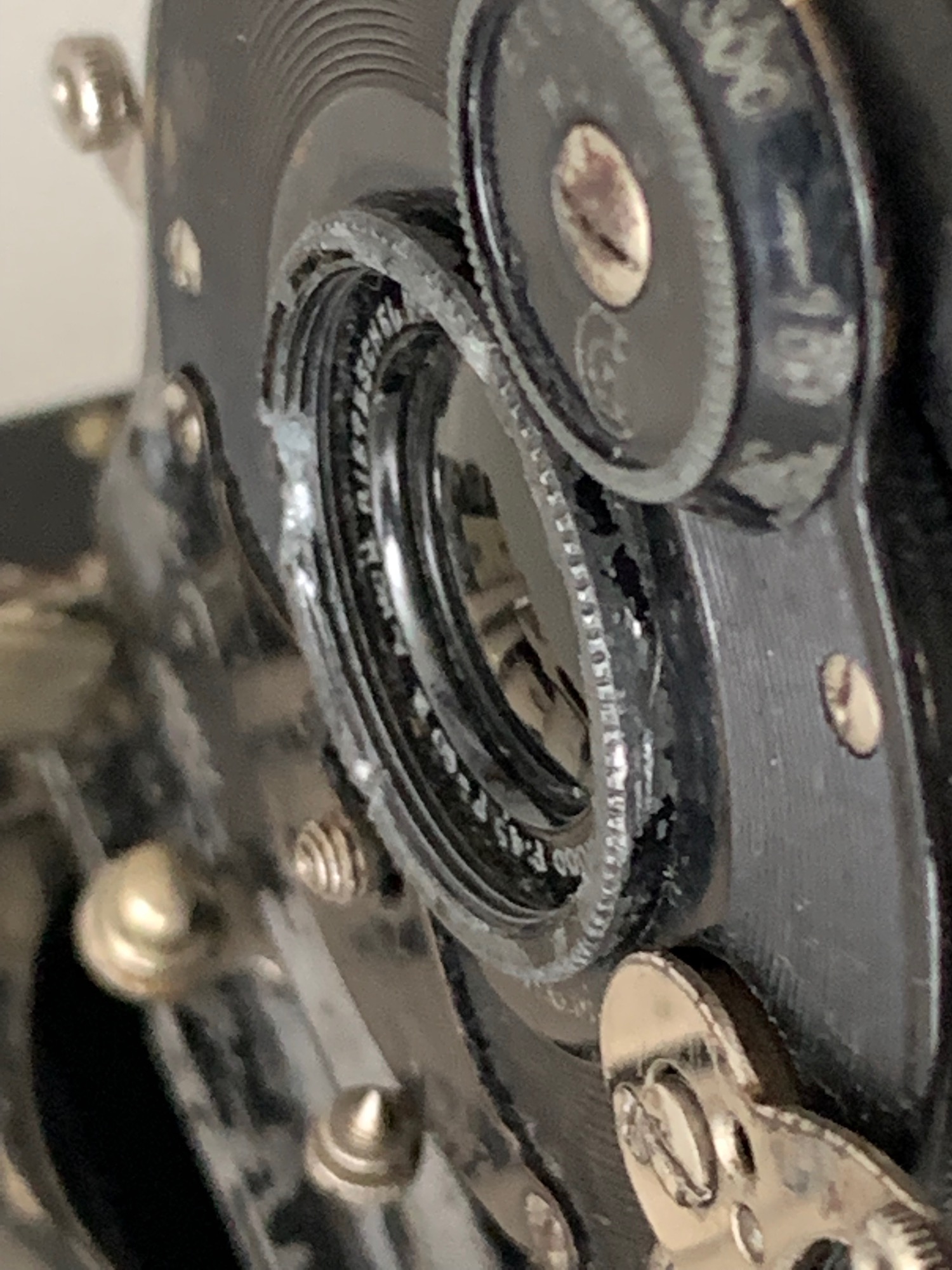 manchmal lassen sich die vorderen Elemente von Objektiven nur schwer aus den Zentralverschlüssen drehen. Gummihandschuhe können helfen, manchmal gibt es auch Schlitze, in die ein Spannschlüssel greift, und bei größeren Fassungen gelingt es auch mit einer Zange. Was aber tun, wenn das alles nicht funktioniert? Ich habe ein Rietzschel Linear in 00-Compound, das vollkommen festsitzt. Es gibt zwar Kerben für den Spannschlüssel, aber da rutscht man leicht ab, und beim Versuch mit einer Zange ist mir ein Stück der Fassung abgebrochen, da die Fläche sehr klein ist (s. Foto). Gibt es hier noch irgendwelche Tricks? Hilft Wärme? Ich kann ja auch nicht einfach Isoprop darüberkippen...
