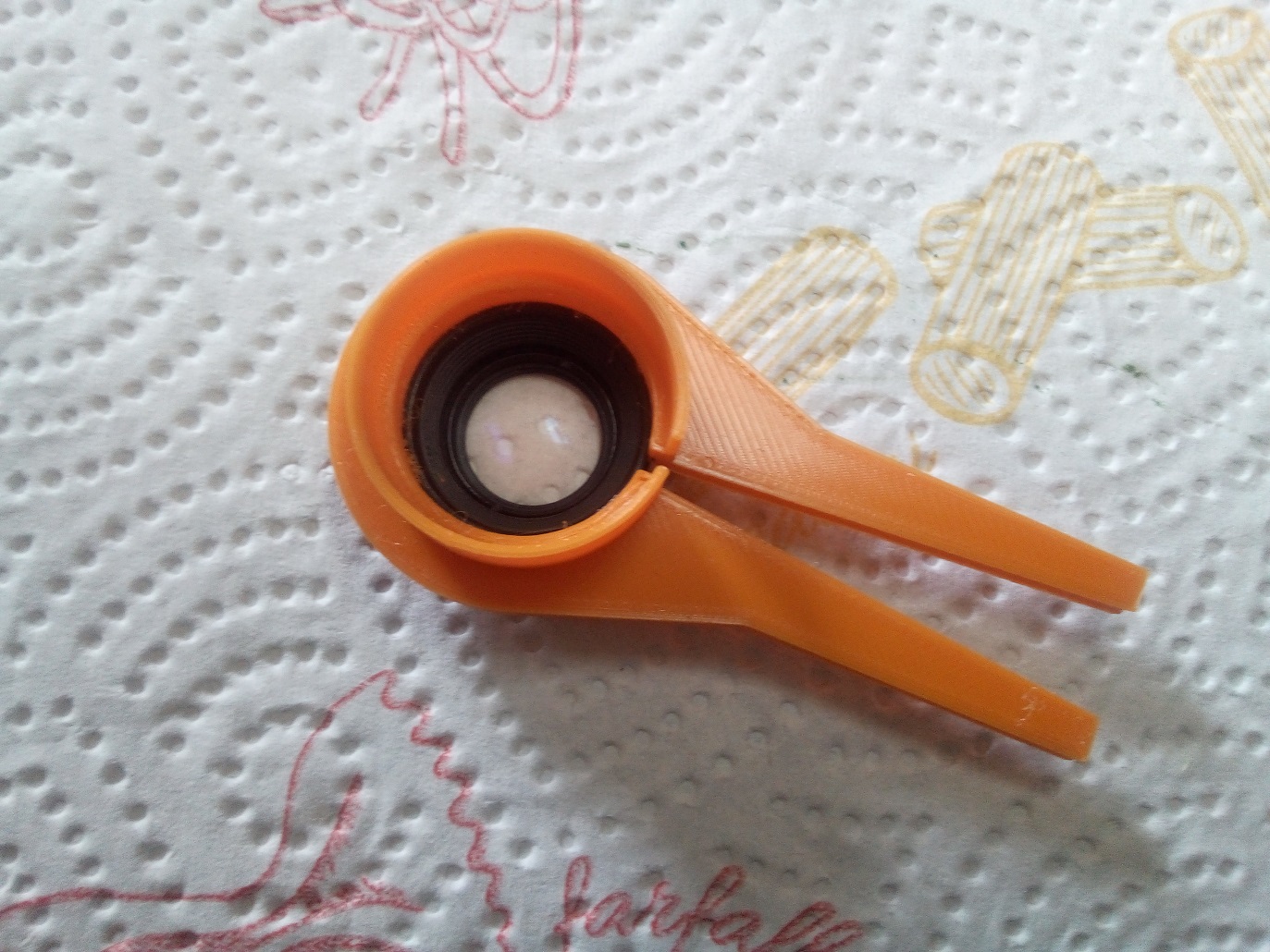 wer einen 3D-Drucker in Reichweite hat, für den könnte diese Druckvorlage nützlich sein. Mir hat das Werkzeug heute bei der Demontage einer störrischen Außenlinse (die "gute" Agfa Schmiere) geholfen. Mit z. B. CURA kann man die Größe den persönlichen Bedürfnissen anpassen. Druckzeit mit den vorgegebenen Einstellungen ca. 2 Stunden.