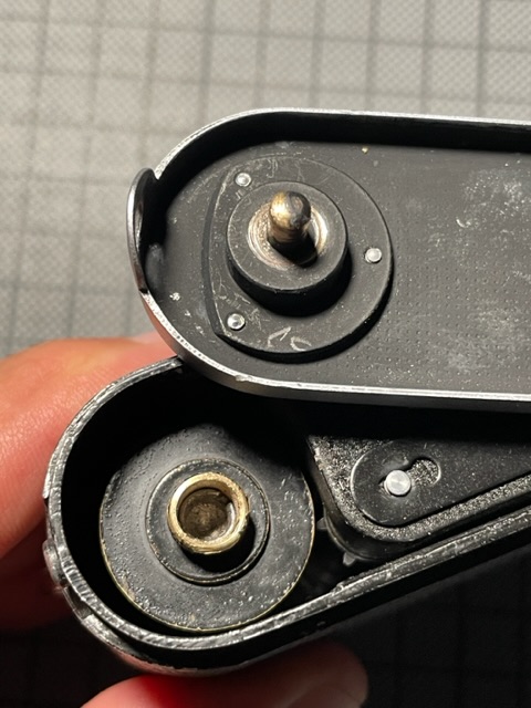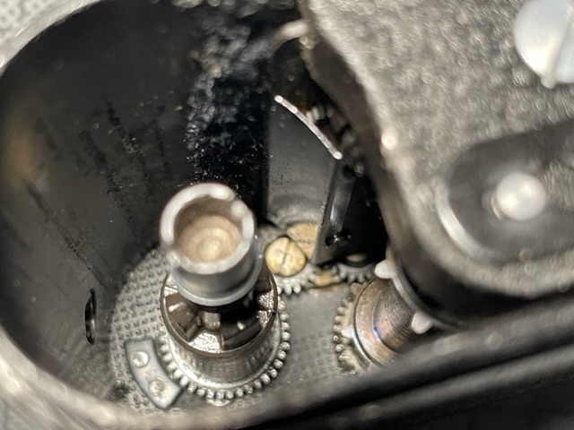 Danke für die Ideen zur Eingrenzung des Problems, Rainer. Es ist kein Filmrest zu erkennen und die Spule dreht beim Filmtransport ohne einen Widerstand. Vielleicht versuche ich, die Spule mal mit einer Zange rauszuziehen. Braucht gefühlt wohl einen ordentlichen Kraftaufwand. Mit deinen Bildern sehe ich schon mal, wie das im Innern mechanisch aussehen könnte.